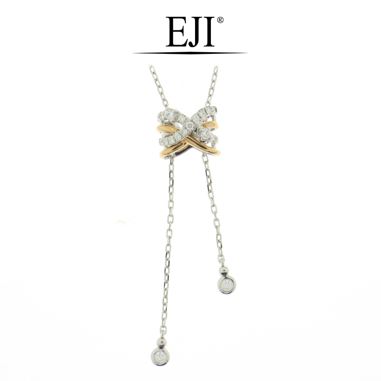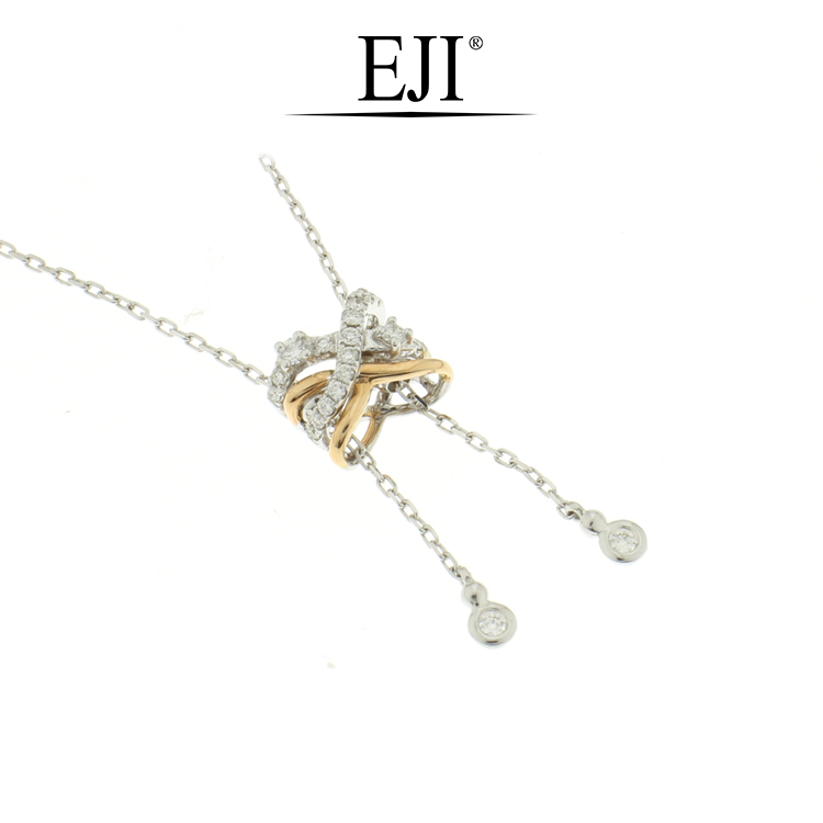 Two tone18k solid gold natural diamonds infinity rings lariat necklace customizable low moq factory direct stylish fine necklace