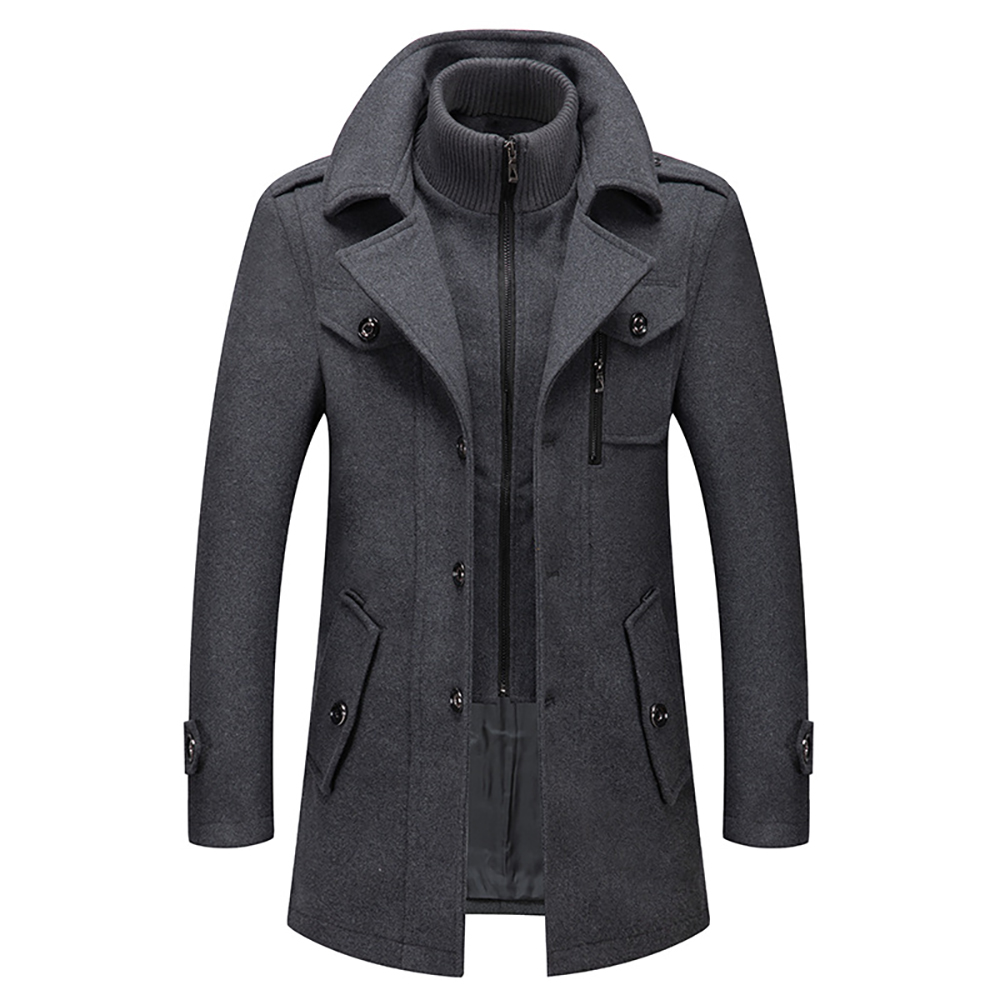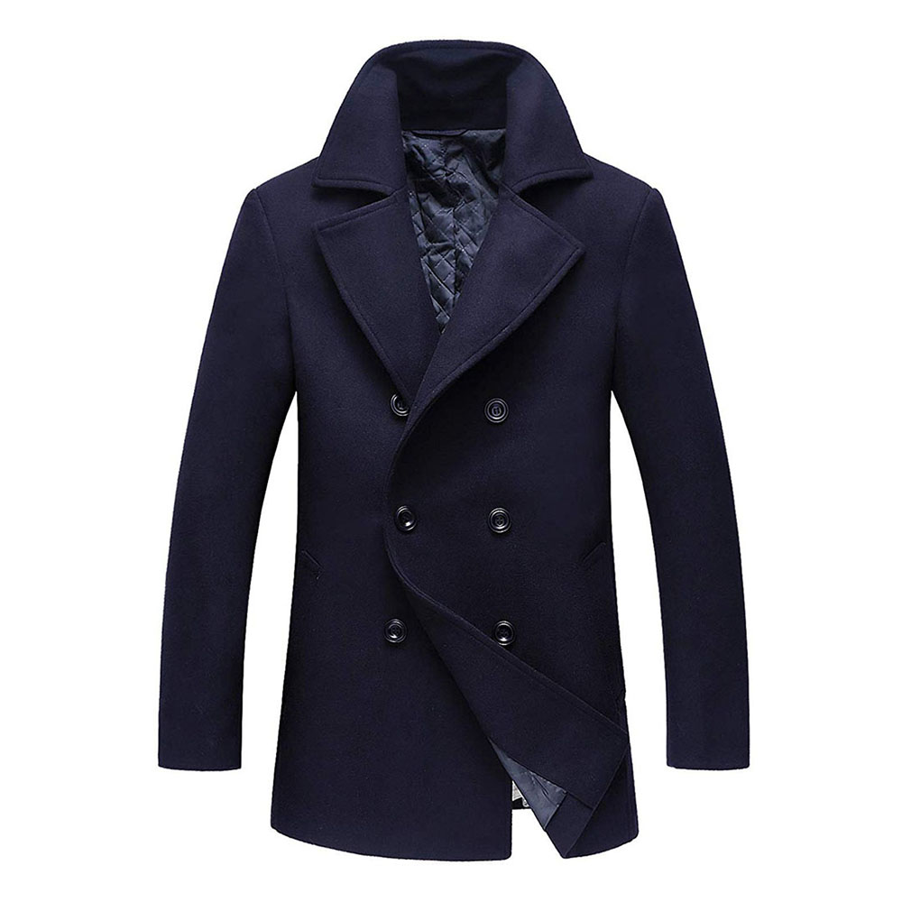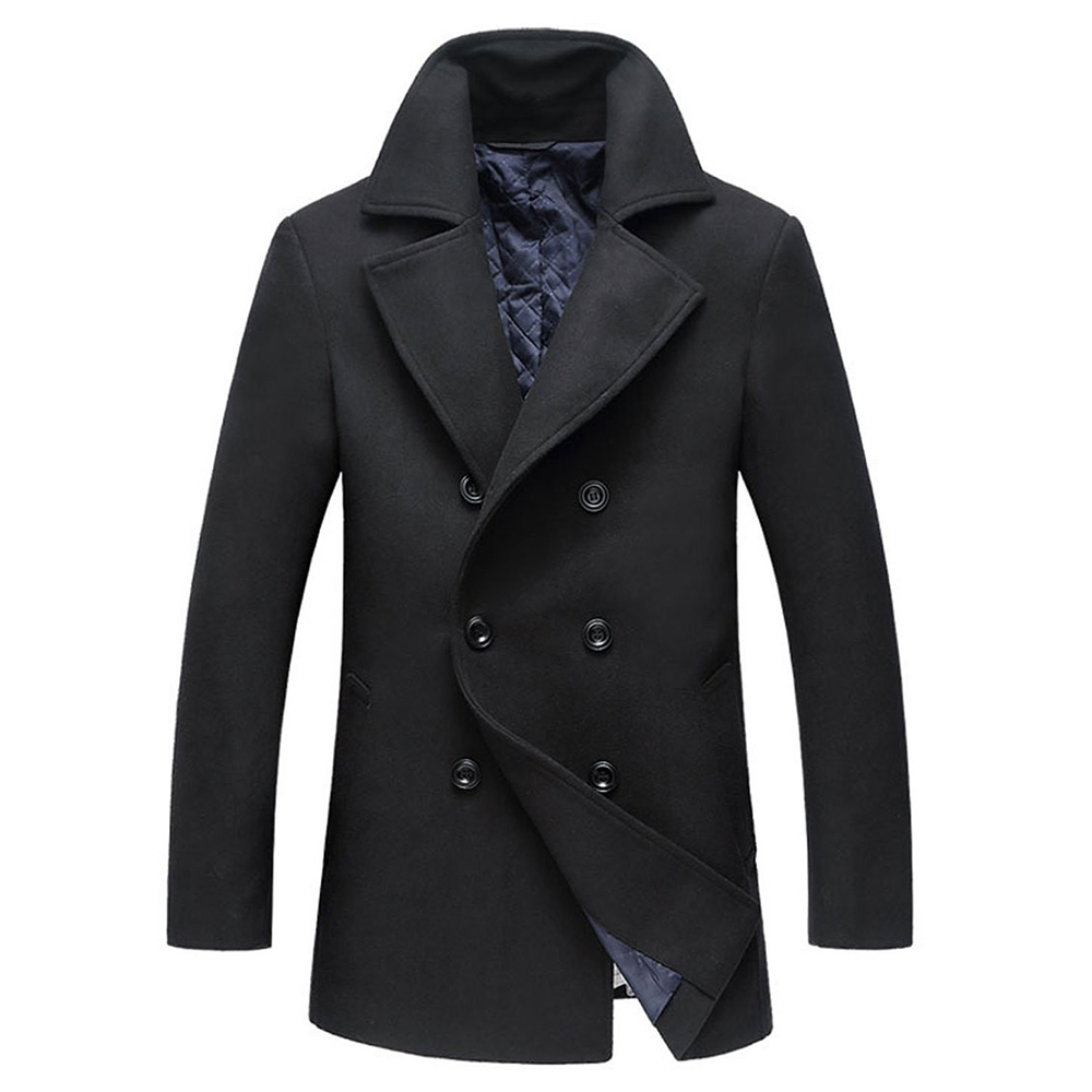 Coats for Mens Long Sleeve Trench Woolen Overcoat Mens Classic Notched Collar Double Breasted Wool Blend Pea Coat