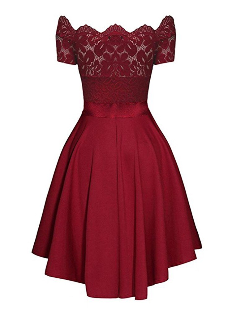 Red Lace Dress Women Patchwork Slash Neck Short Sleeve Sashes Tunic Dress 2023 Summer Ladies Sexy Evening Party Dresses