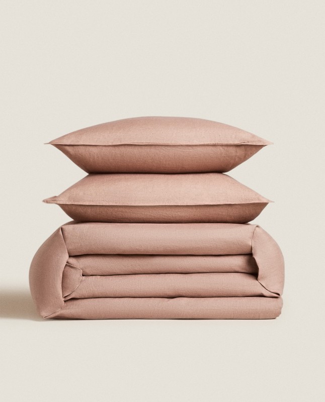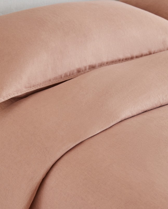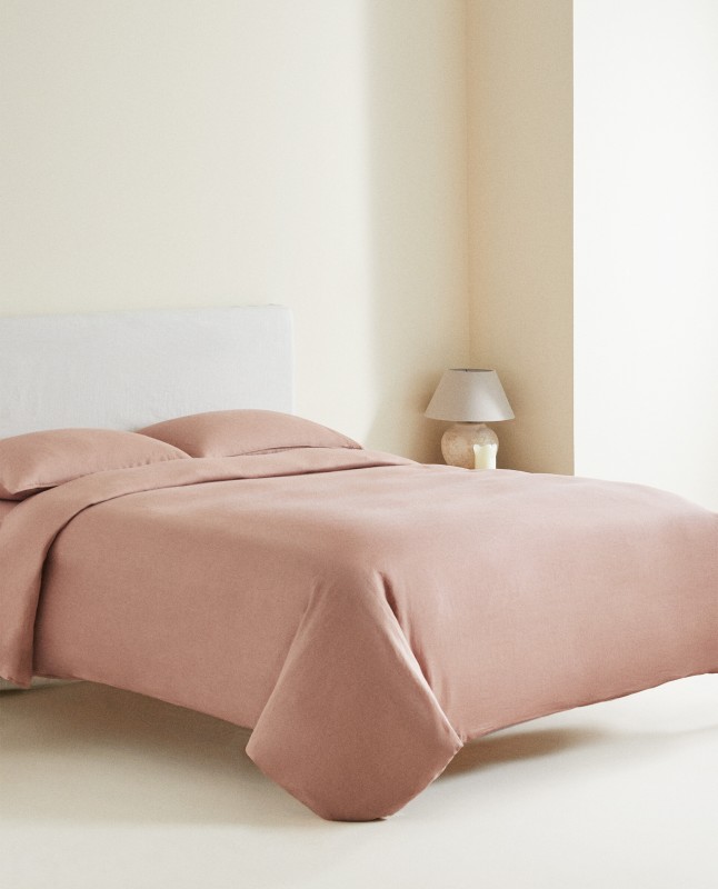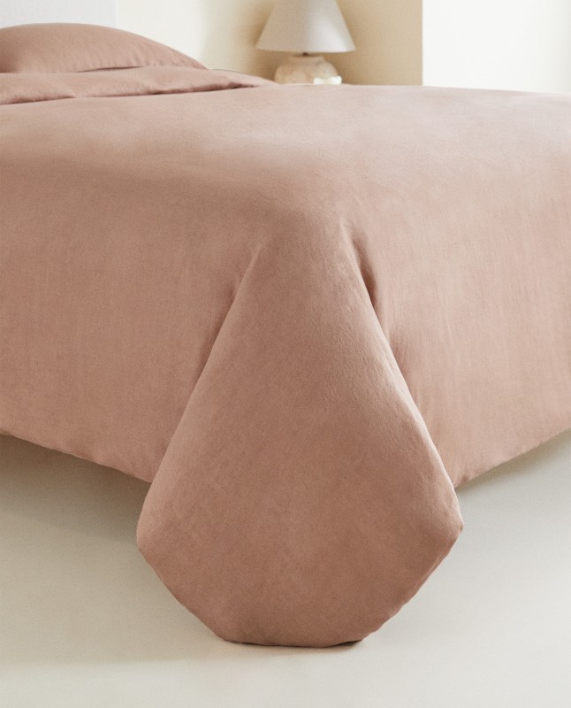 Solid duvet cover in 140 GSM washed linen. Available in   several colors.