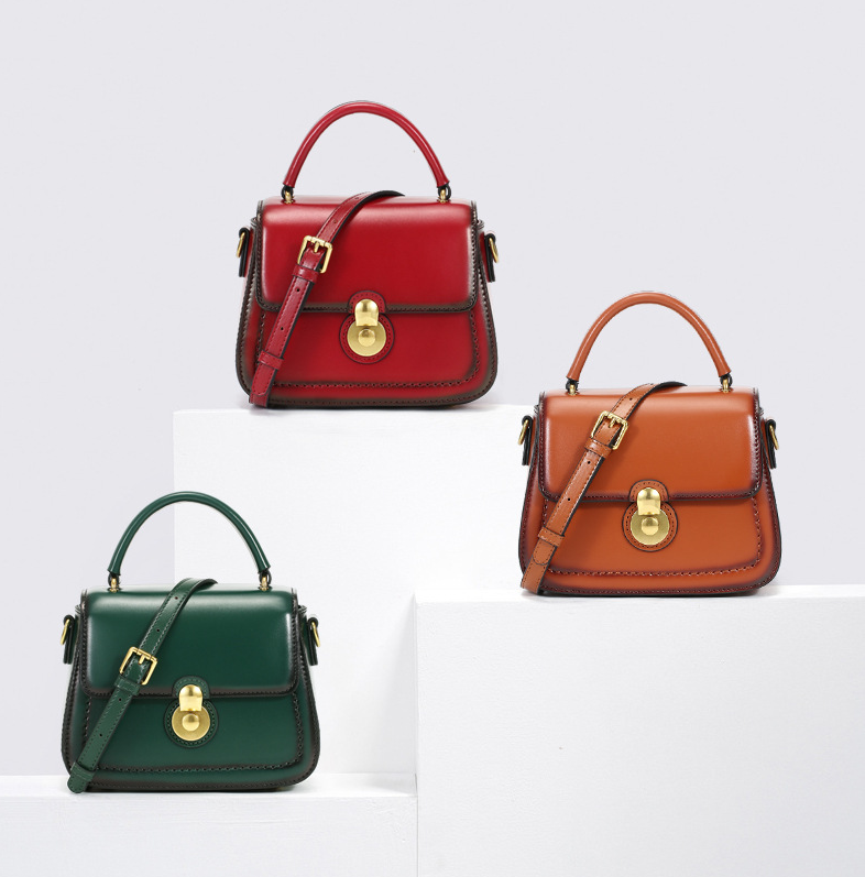 2022 trendy handbags retro real leather women crossbody bags casual fashion custom logo shoulder vintage bags women handbags