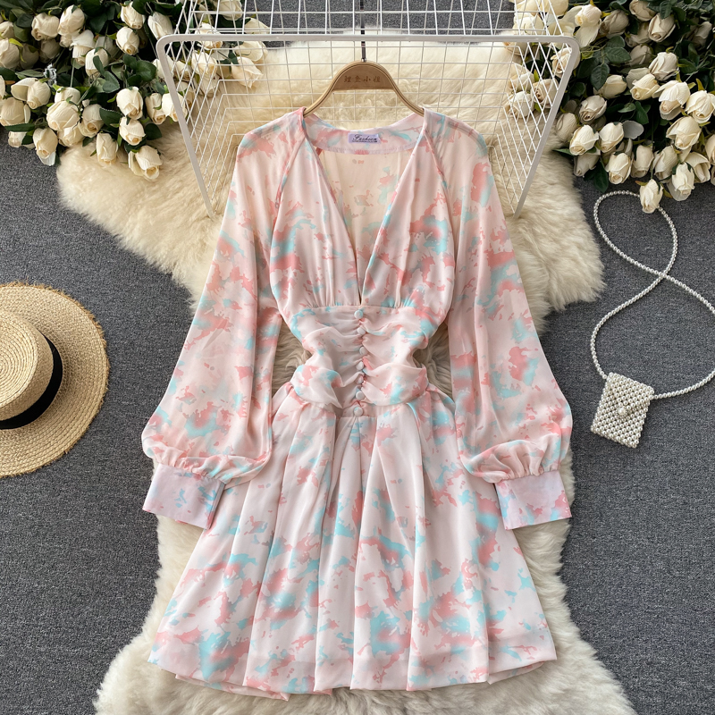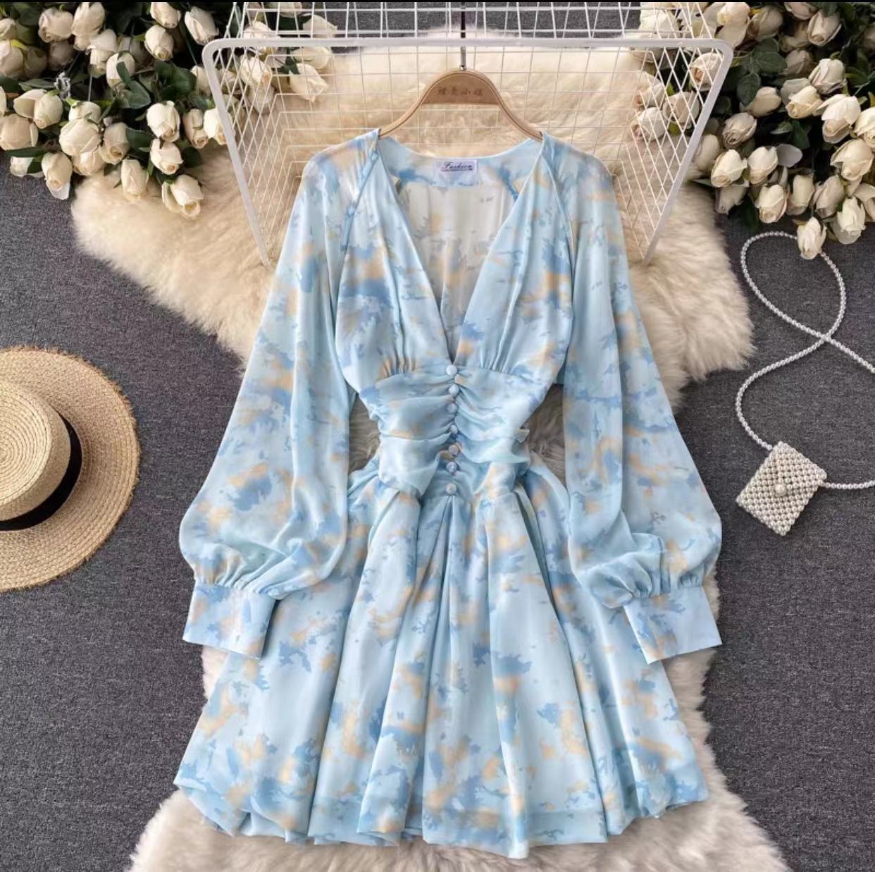 2022 Princess long sleeve high waist retro flower print Mini design lady clothes free samples women summer casual dresses
