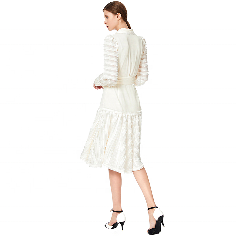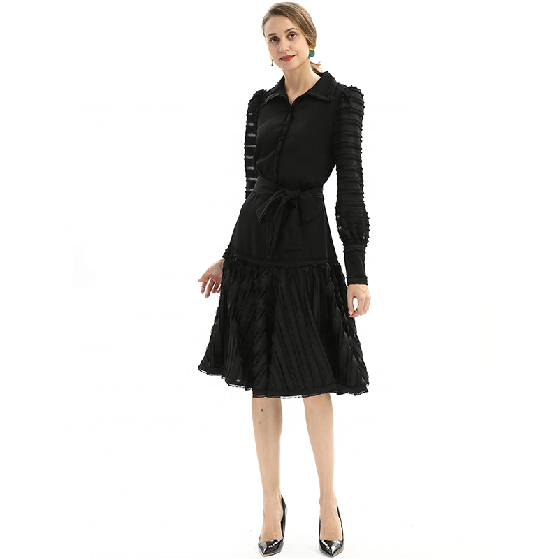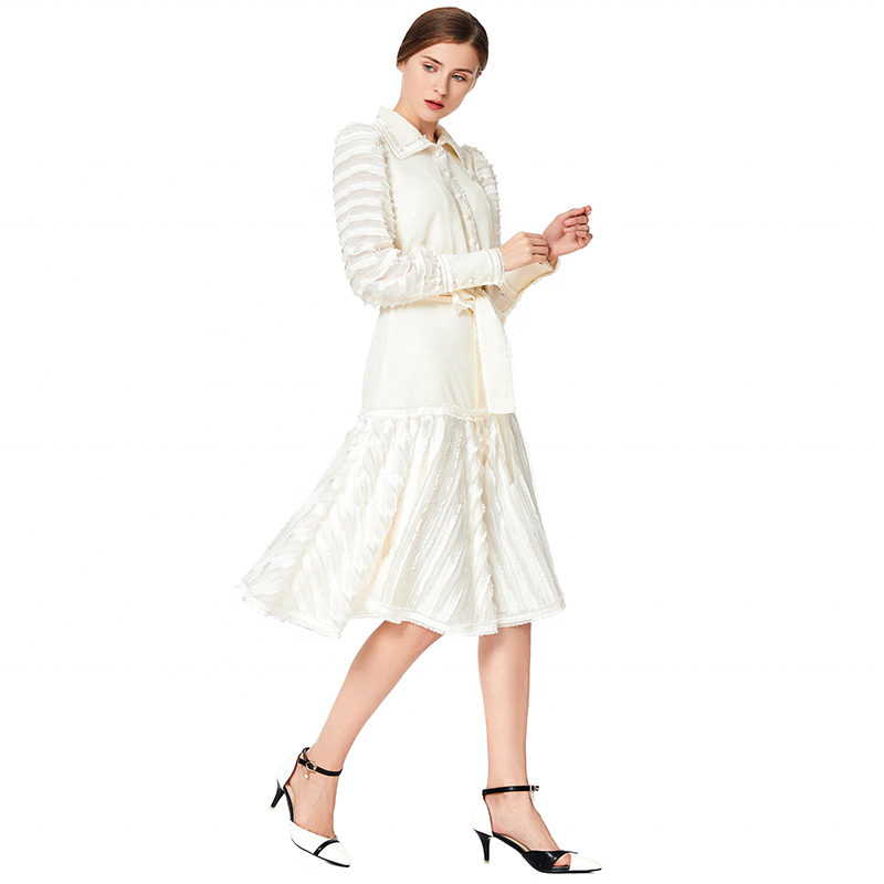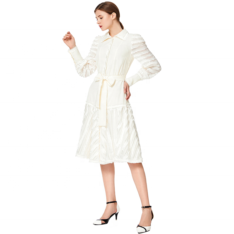 Turn-down Collar,CF Placket With Buttons,Collar Edge /CF /Waist /Hem /Cuff /Sash With Eyelash Lace For Giving A Sense Of