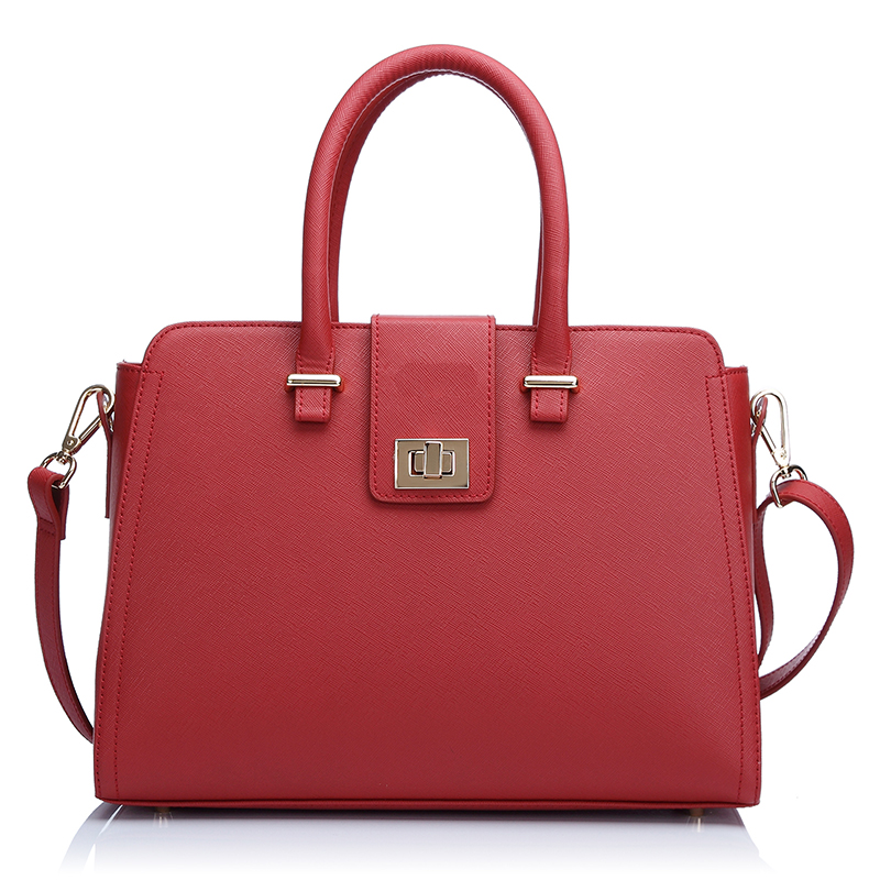 PRODUCT NAME | Classic Brand Designer Genuine Saffiano Cowhide Leather Red Womens Handbags Tote Bags With Single National Hasp For Office Women |
