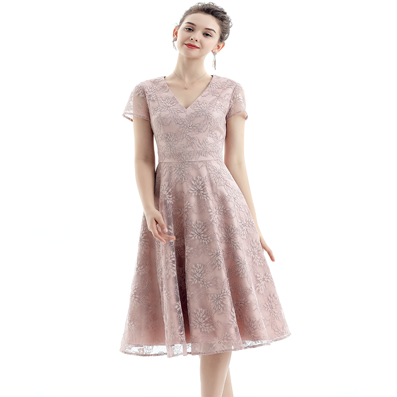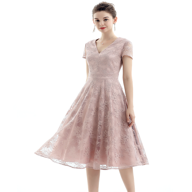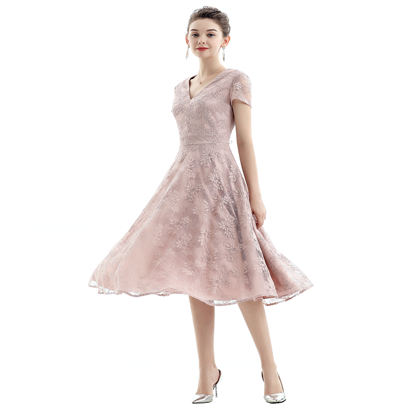 V-Neck,Ball Gown Flare Skirt Chieved Gliding Feeling,Front Princess Seams And Back Waist Darts And Waistband For Slim Waist,Side Pockets,With Lining
