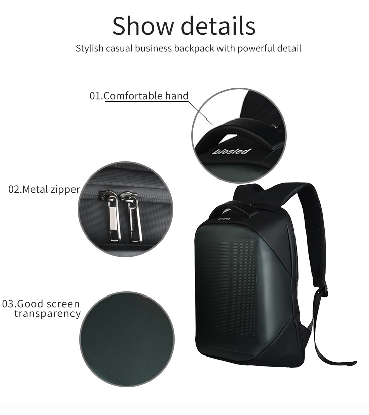 2022 New Trend Digital Dynamic Screen Black Nylon Backpack Led Light Display Smart Men Backpack With Mobile Billboard