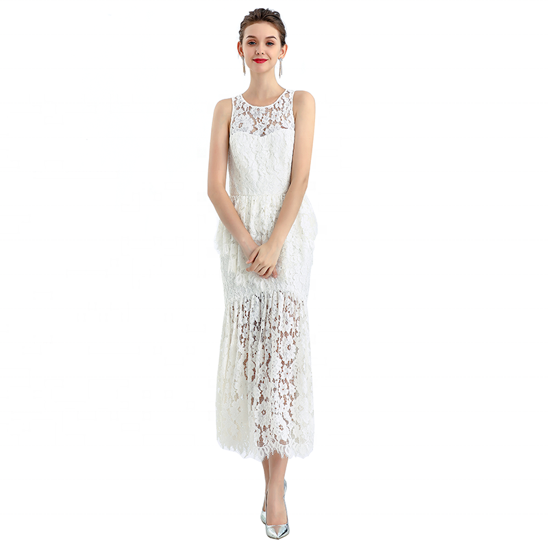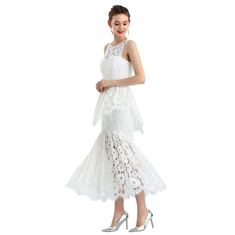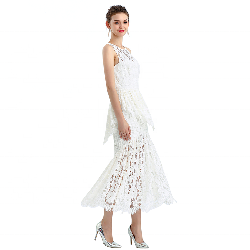 O-neck,Front/Back yokes,Front princess seam shaded bust,Back waist dart and waist seam for slim waist, Eyelash Scallop ruffle at waist,Wrap hip with curve seam,Eyelash Scallop ruffle flare skirt lighting most lightspot, Bodycon fit and flare midi Dresss showing charming body.Soft breathable lining