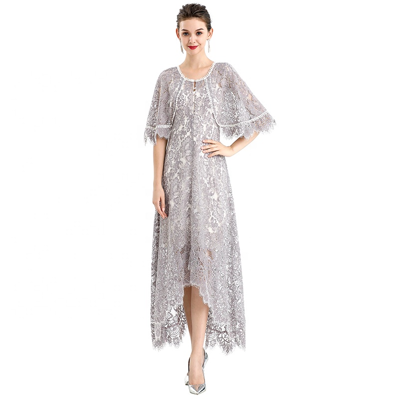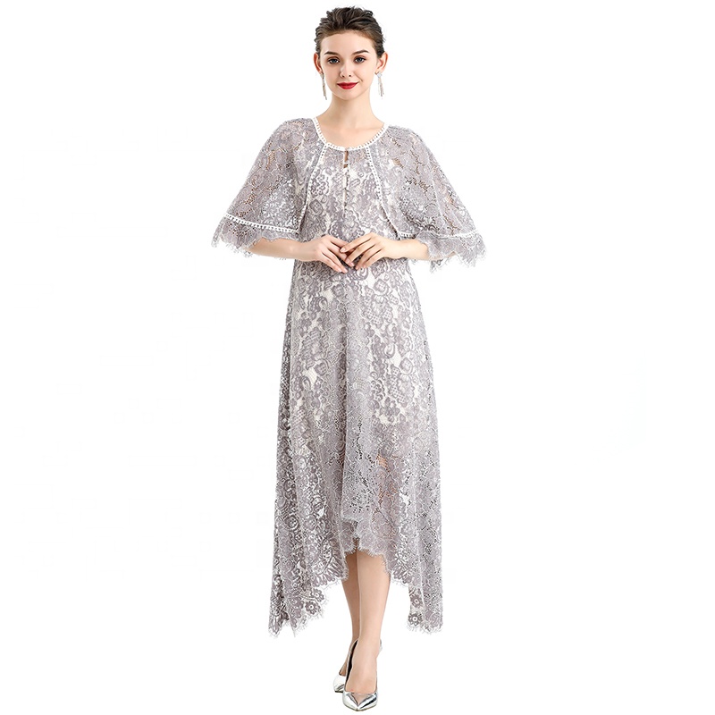 ND078-1 casual dresses Asymmetric Embroidered Lace maxi dresses women