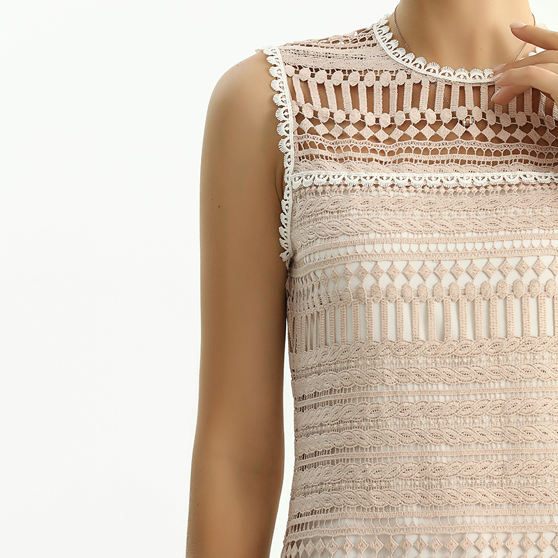 *Design: Lace With Ramage,Sheer Hollow Out Lace,Sleeveless,O-Neck,Ruched Front Neck,Ball Gown Flare Skirt Achieved Gliding Feeling,Hem Eyslash Scallop Bringing Lightspot, CF/CB Seams On Bodice, Waistband For Slim Waist,CB Invisable Zipper,Contrast Color Of Lining On Bodice Expelling Monotonous, Mached Color For Skirt Lining,Short Dress,Exquisite Workmanship,Retro Classic Cut,Fashion And Casual,Slim And Tall,Gliding And Energetic,Sexy And Attractive,Sweet And Younger,Elegant And Tasteful