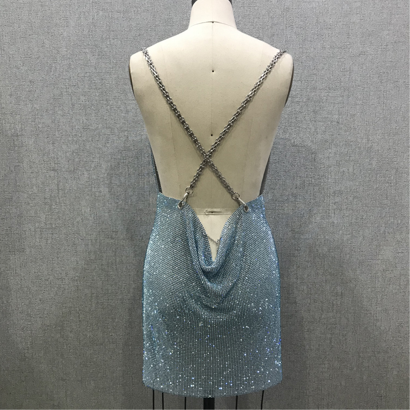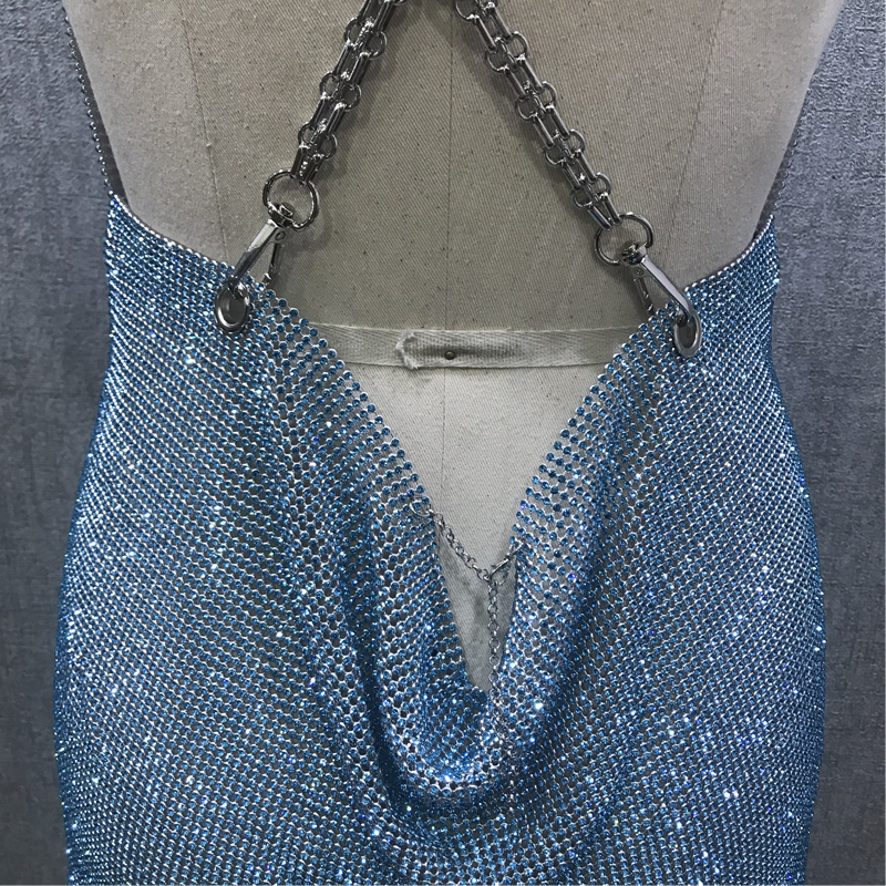 | Product name | Party Metal Chain Shiny Blue Crystal Dress |