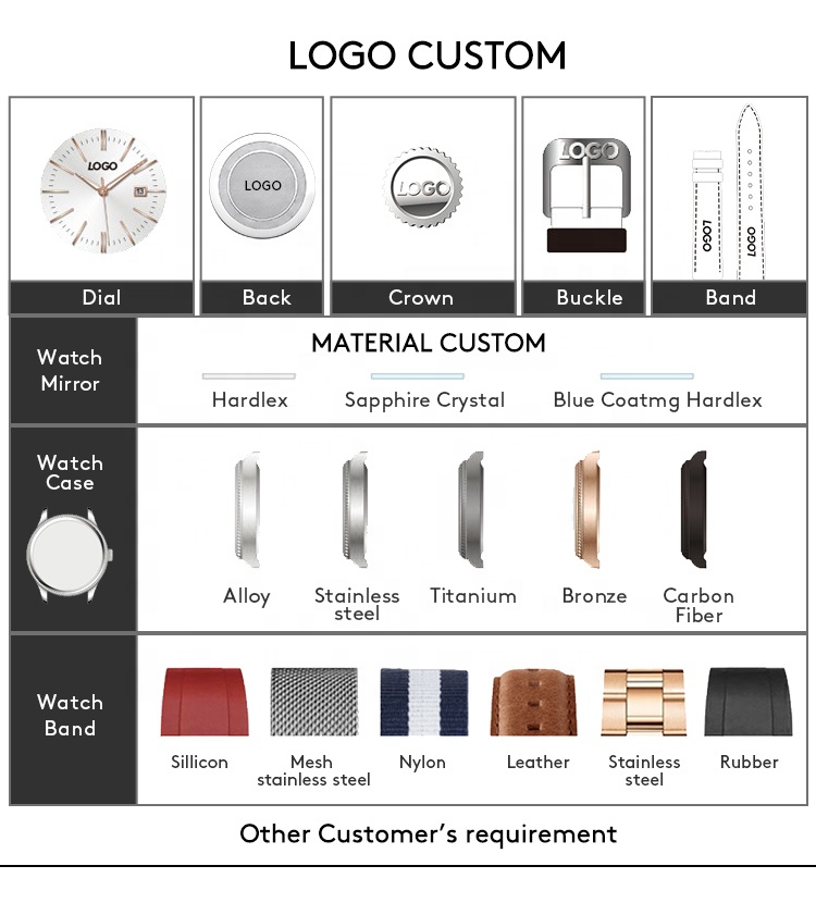 Options | Alloy watch (Good quality with cheap price) | Stainless steel watch (Perfect quality for High-end market) |