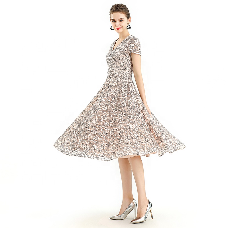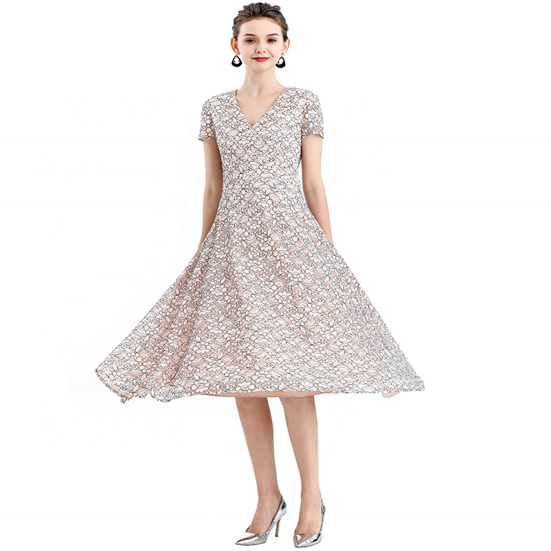 V-Neck,Ball Gown Flare Skirt Chieved Gliding Feeling,Front Princess Seams And Back Waist Darts And Waistband For Slim Waist,With Breathable And Stretchy Lining