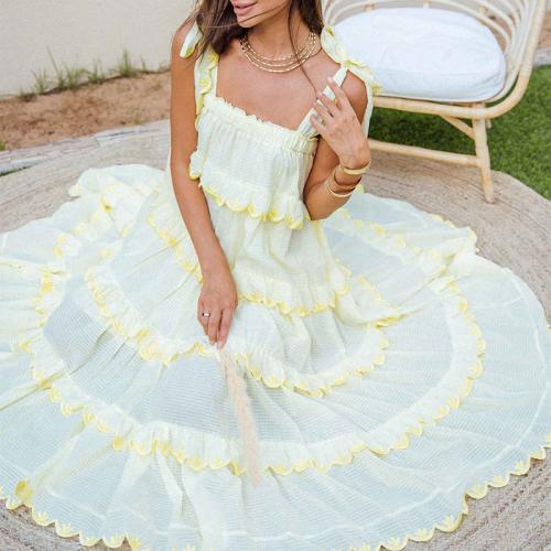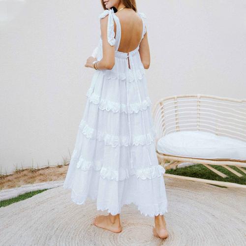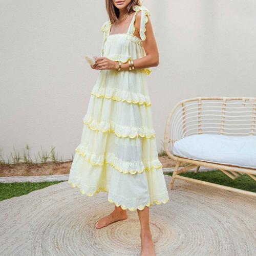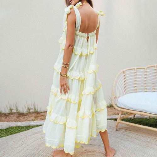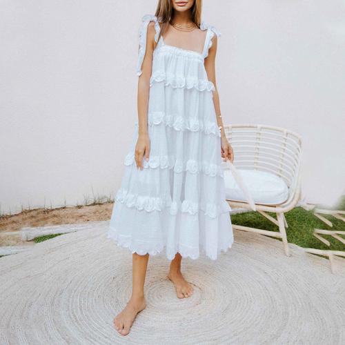summer casual Spandex & Polyester & Cotton scallop & long style Slip Dress large hem design embroider : PC 598768