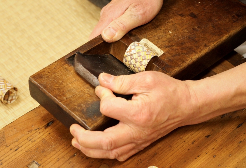 A variety of different species of trees grow in Japan throughout the four seasons here. Hand planes are used to carve out thin wooden strips from bundles that combine wood from these different species of trees to produce wooden sheets with fascinating patterns.This is a traditional Japanese craftsmanship technique with a history of nearly 400 years.