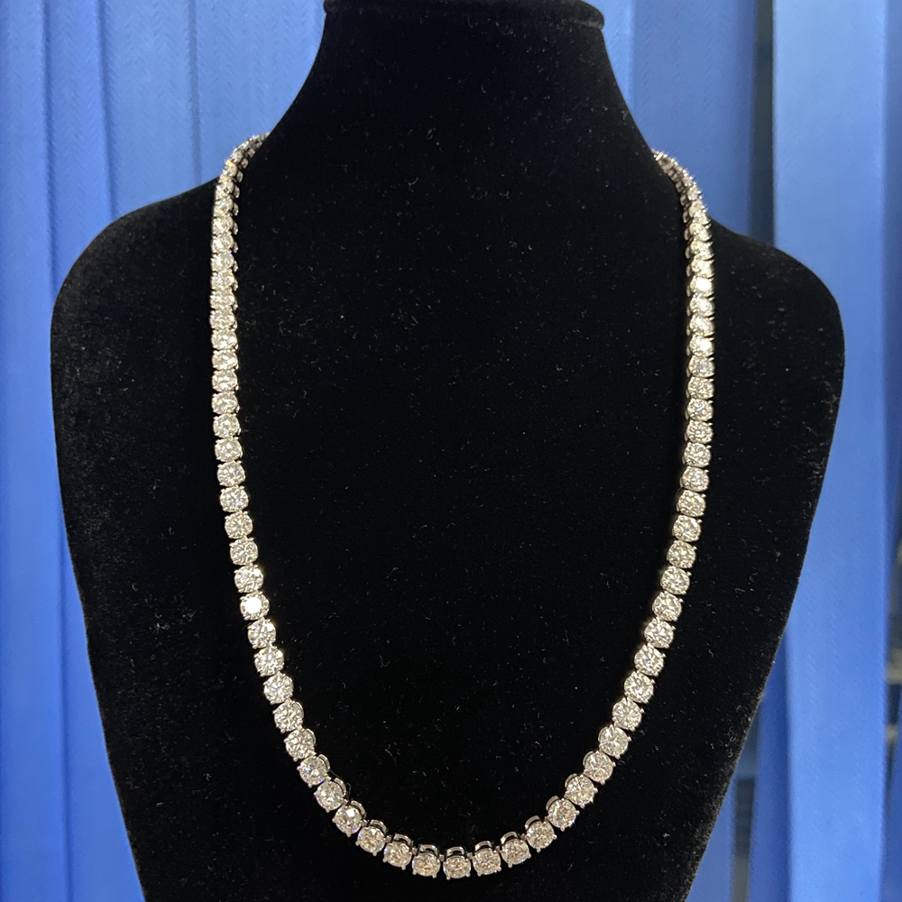 14K White/Yellow/Rose Gold Tennis Hand Set Lab Grown Diamond Chian/Necklace