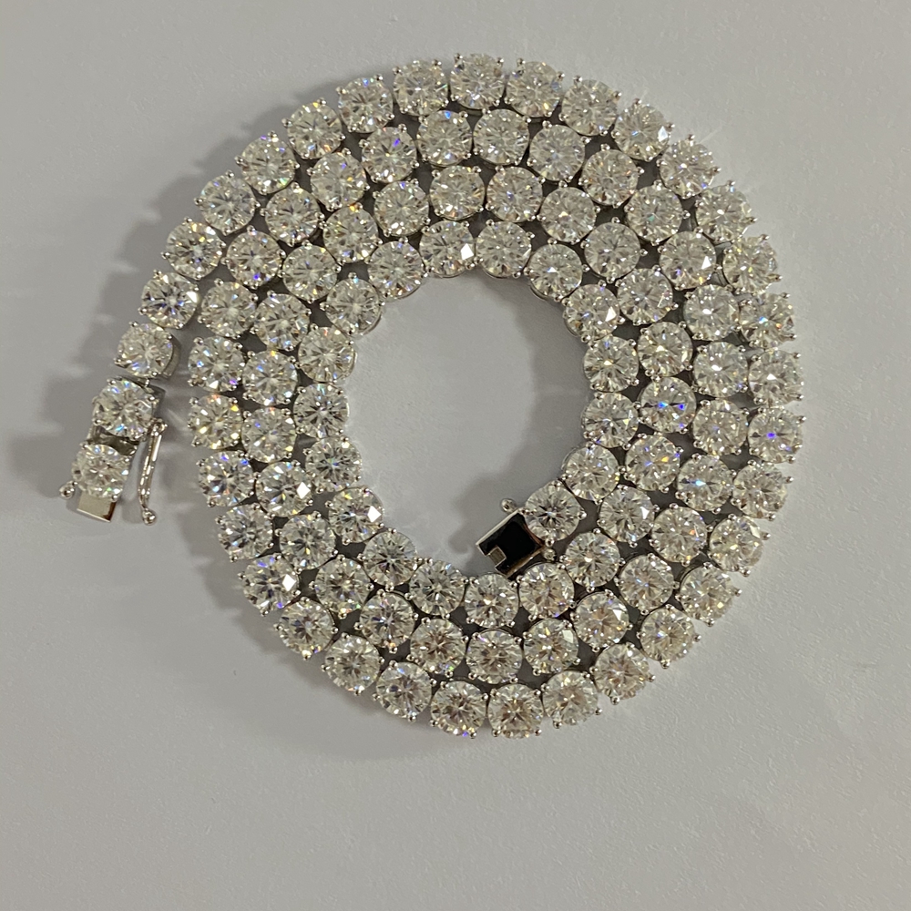 HQ GEMS 20 Inch 5mm Silver Moissanite Tennis Chain 5mm Men Pip Hop Necklace