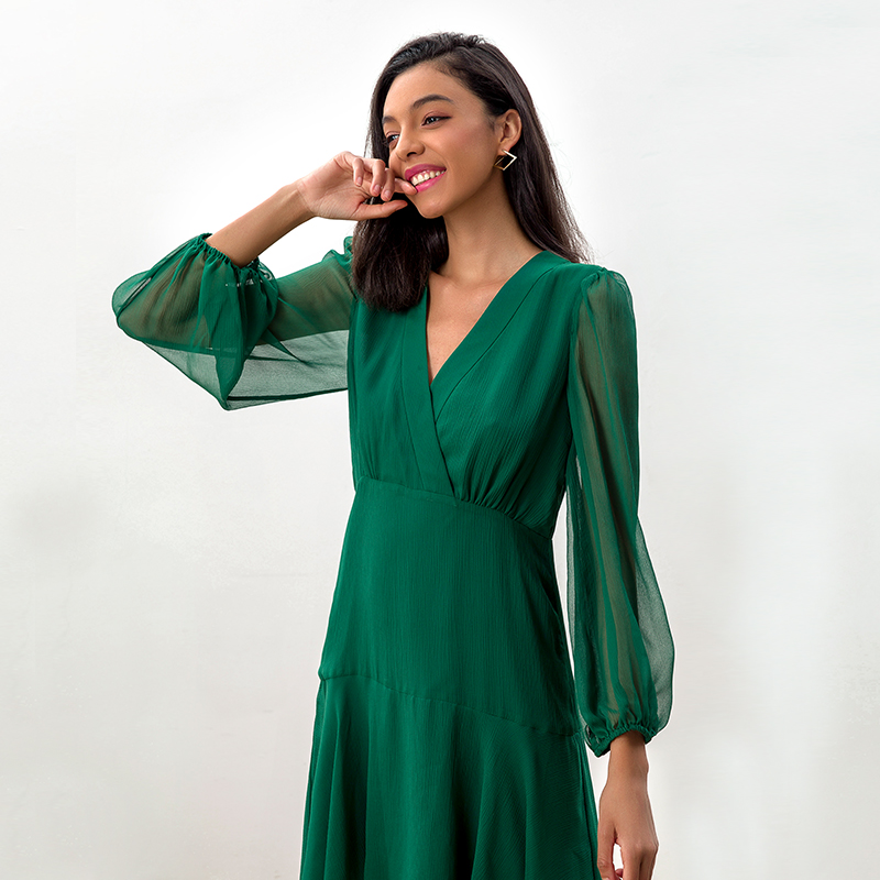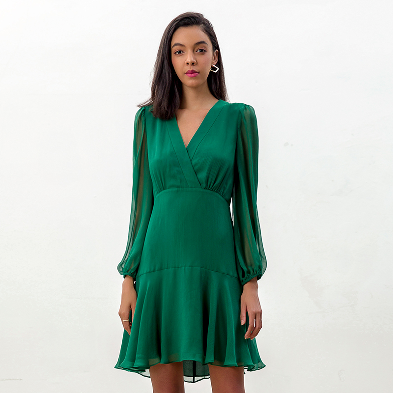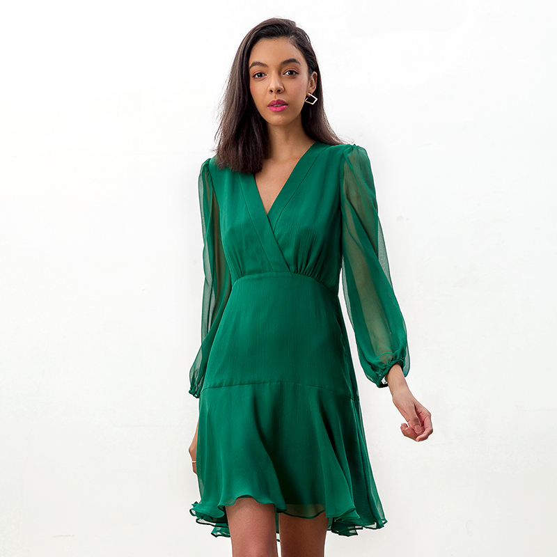 ND272 casual dresses Lantern Chiffon Ruffle hem elegant dress evening dresses