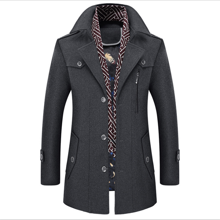 Latest Design Woolen Coat Slim Fit Single Long Breasted Winter Plus Size Men's Coat