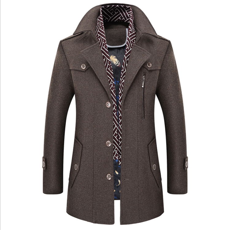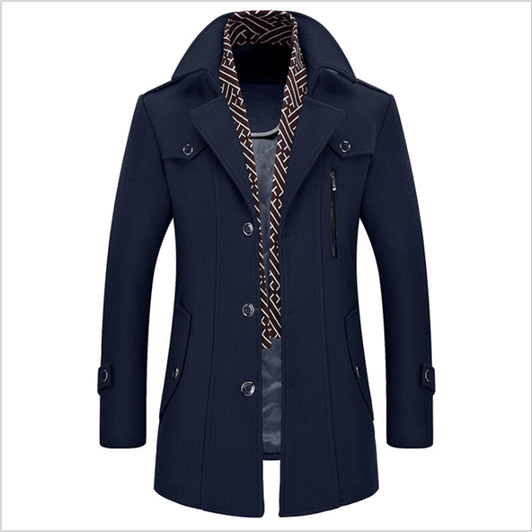 Woolen coat men's winter thickened trim wool windbreaker long thickened woolen coat scarf