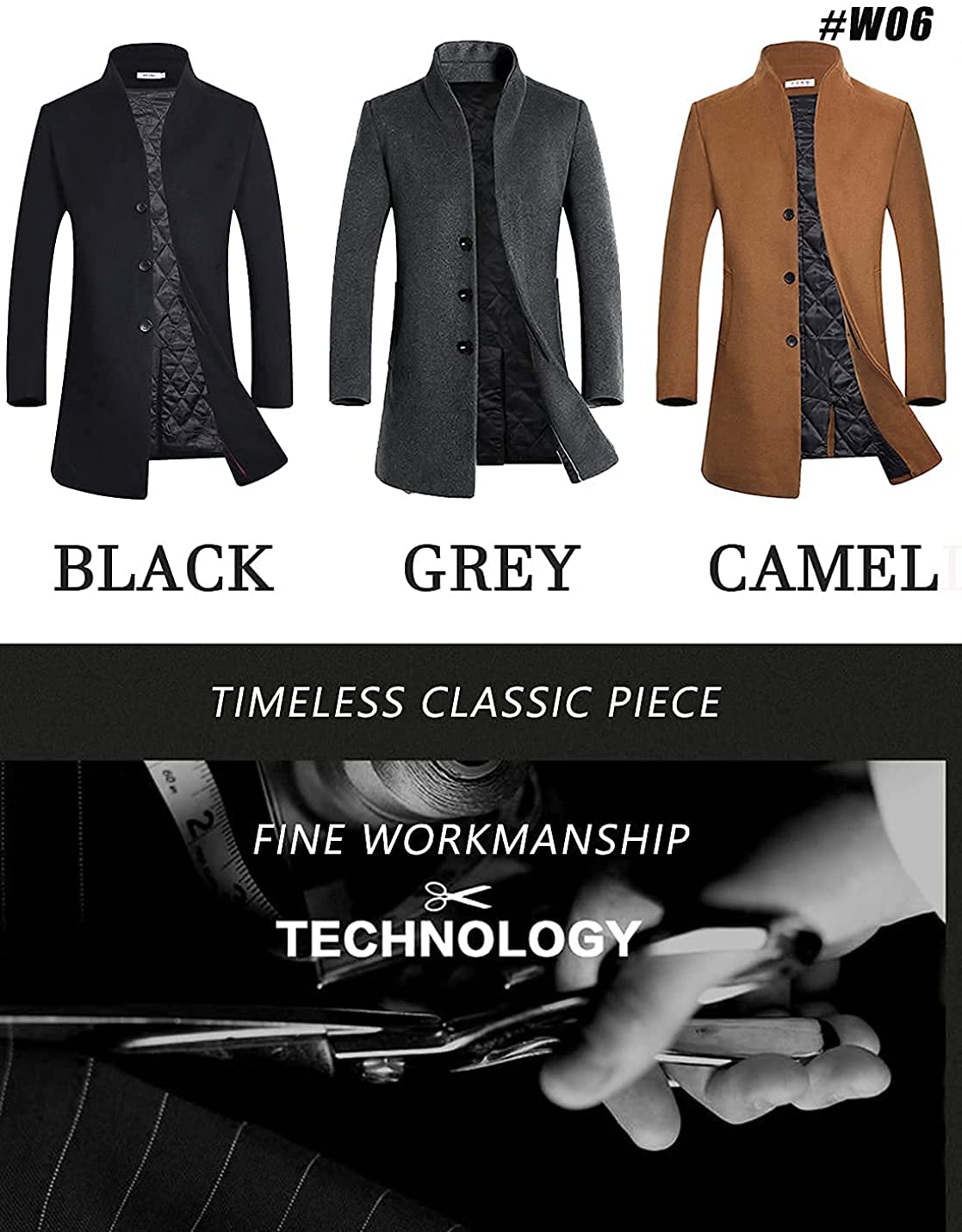 Latest Design Woolen Coat Slim Fit Single Long Breasted Winter Plus Size Men's Coat