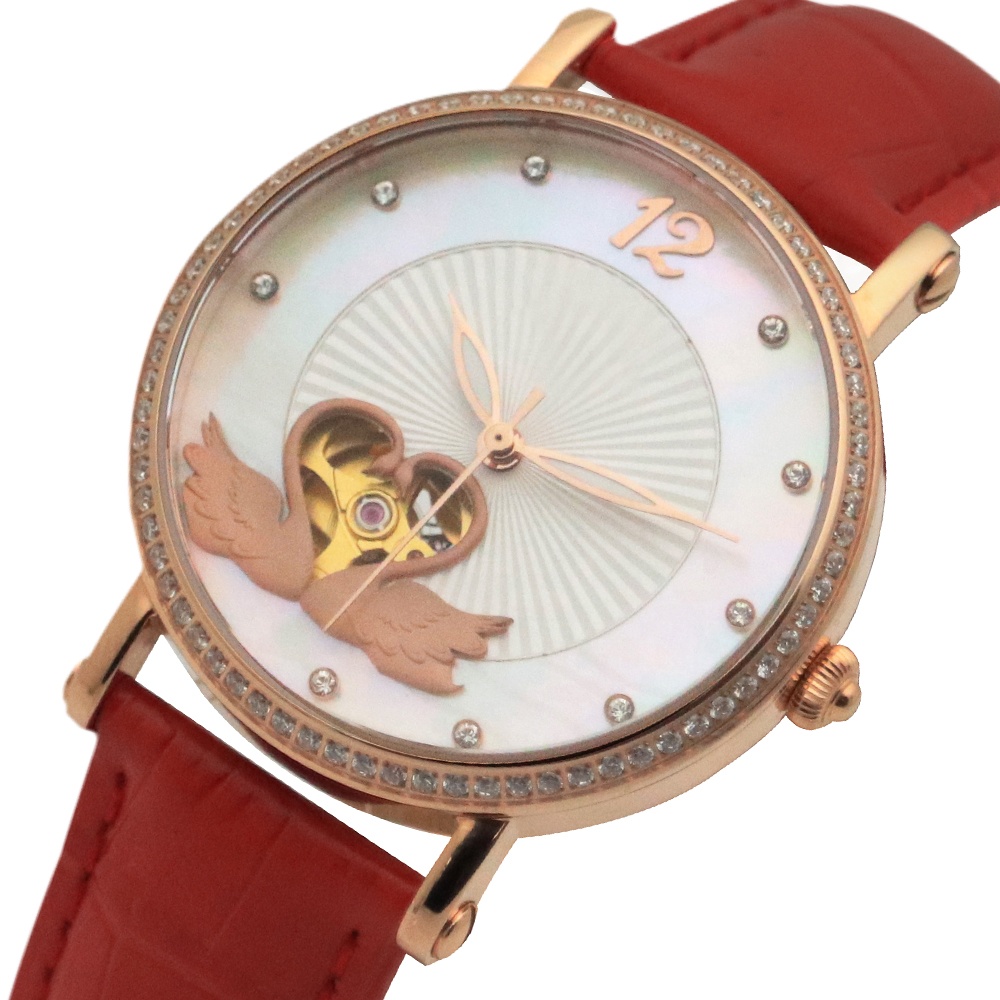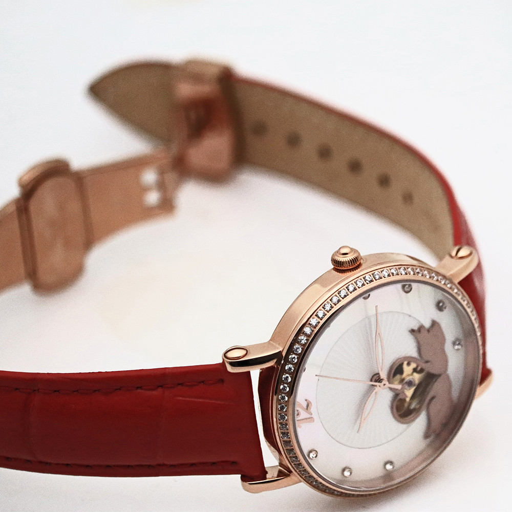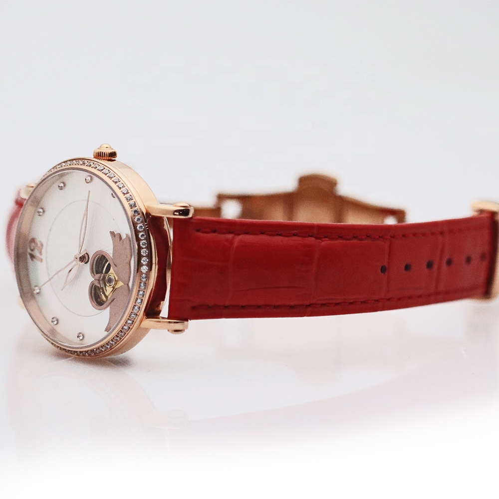 Unbrand Red Leather Strap Women Luxury Automatic Mechanical Sports Watch Female Fashion Watch Casual