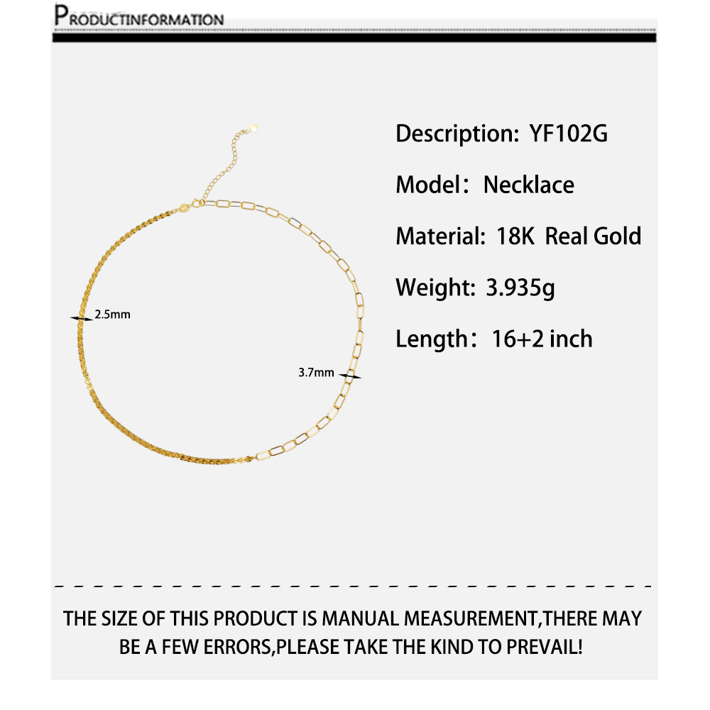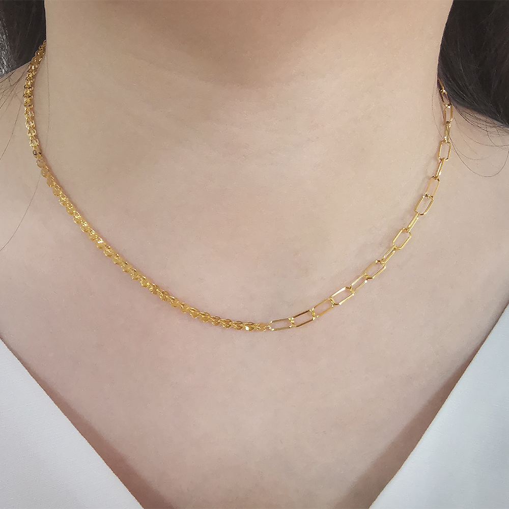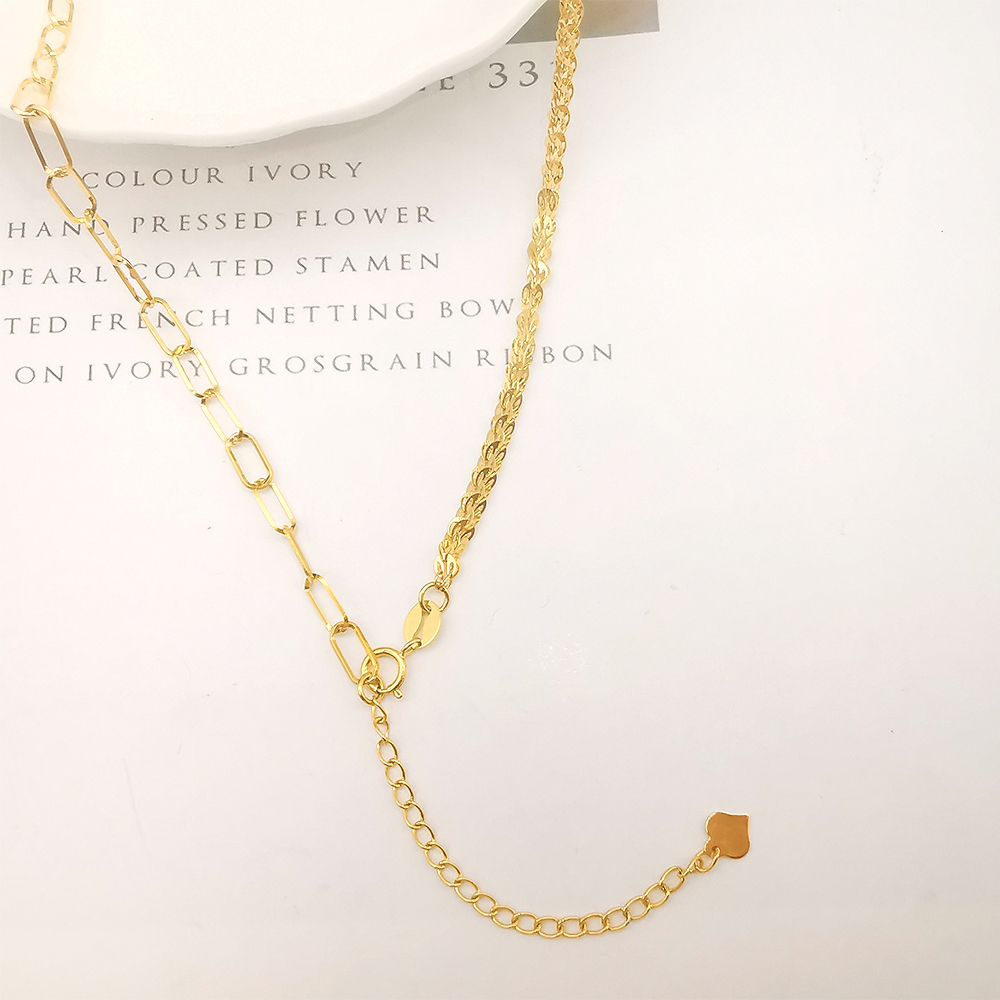 Gold Combined Link Paper Clip Chain Necklace Exquisite New Design 18K Real Solid Popular Women Necklaces Yellow Gold Geometric