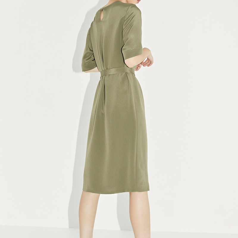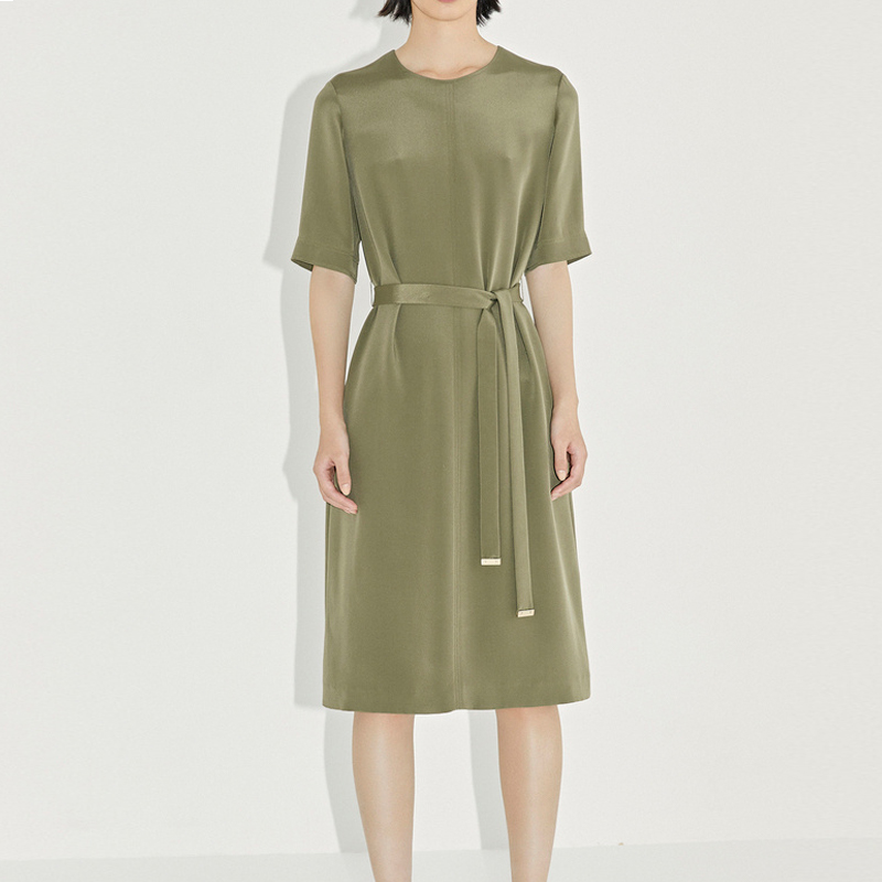 | Product Name | Elegant Lady Luxury Dress Fashion Belt Design Midi Dress Real Silk Dress | ||||||