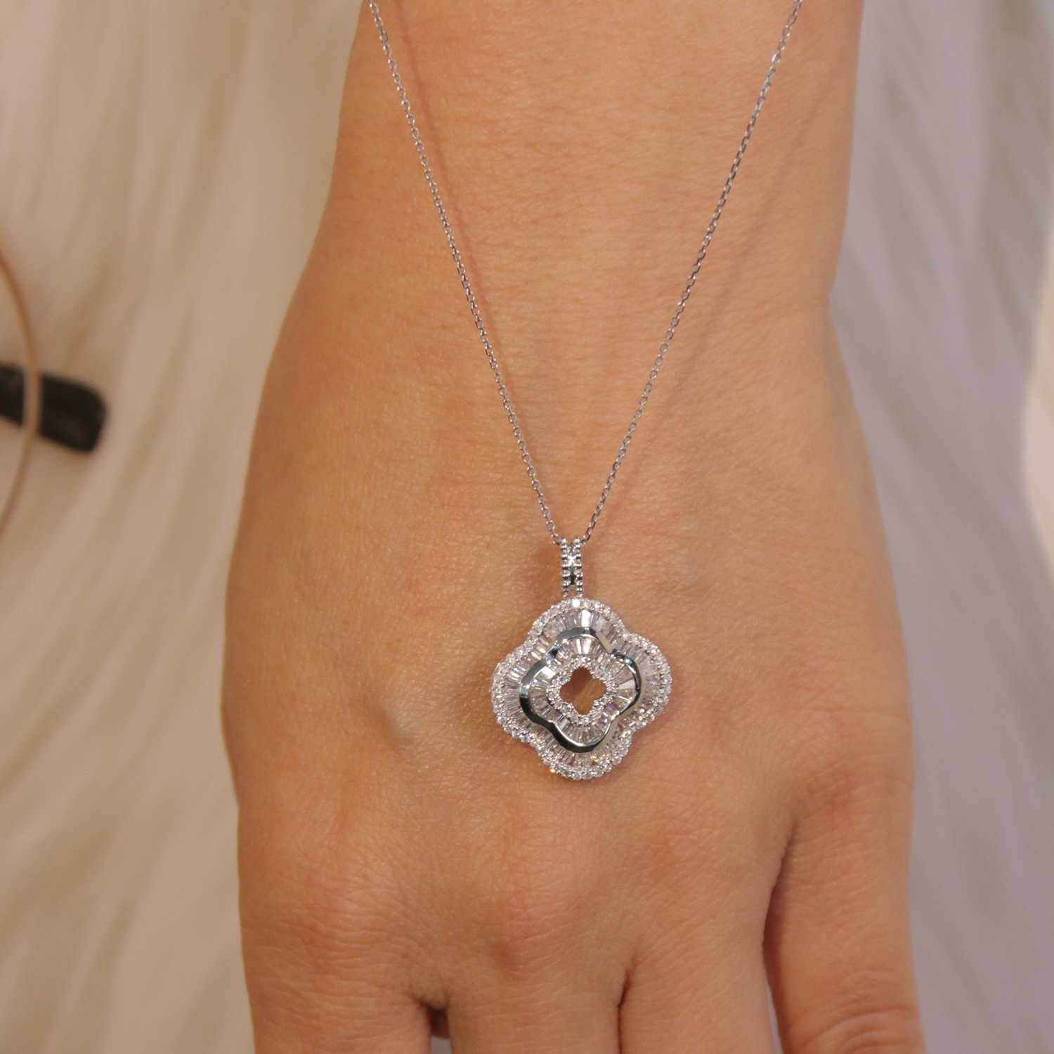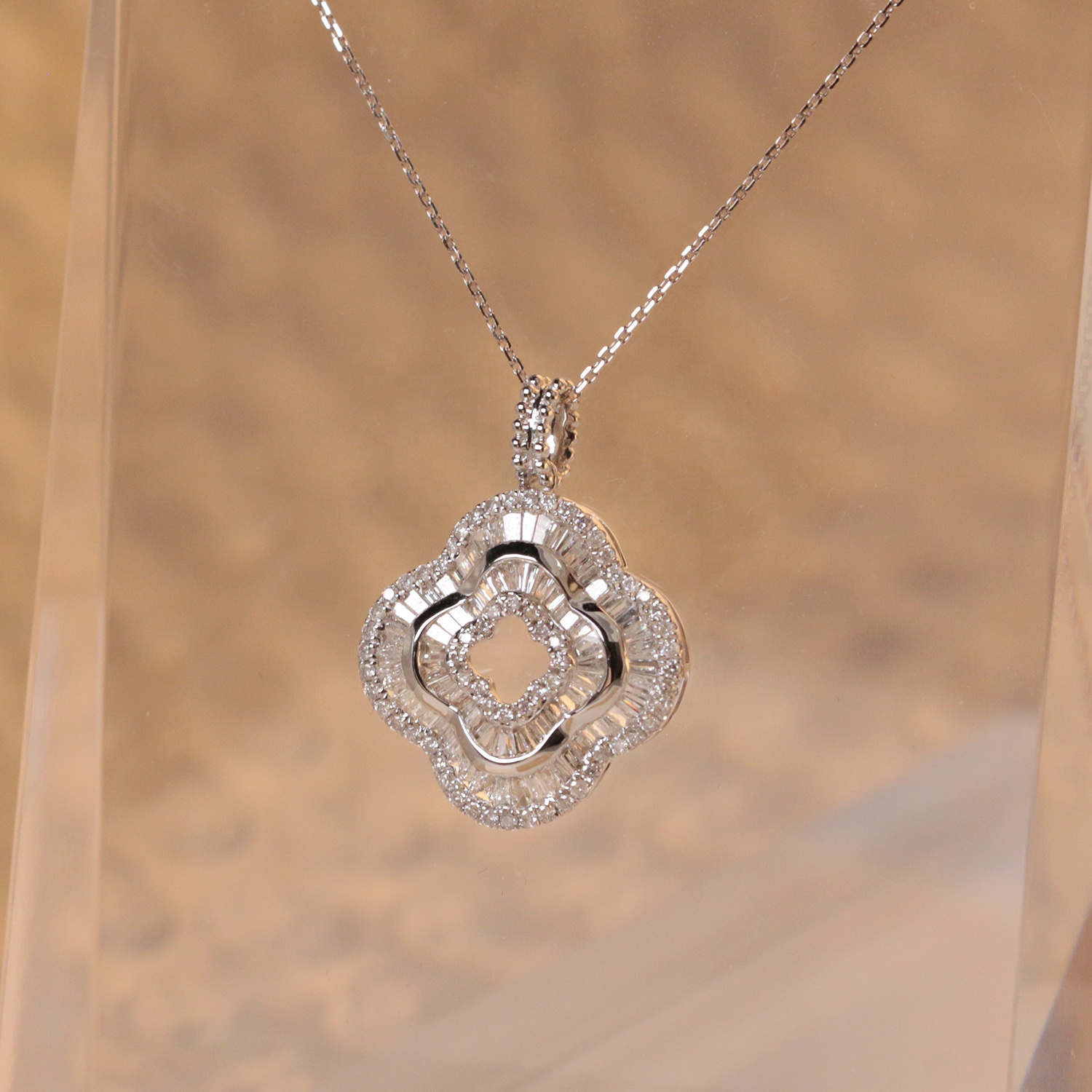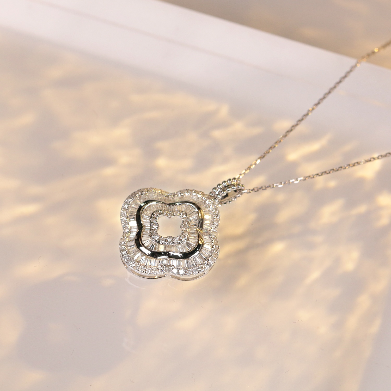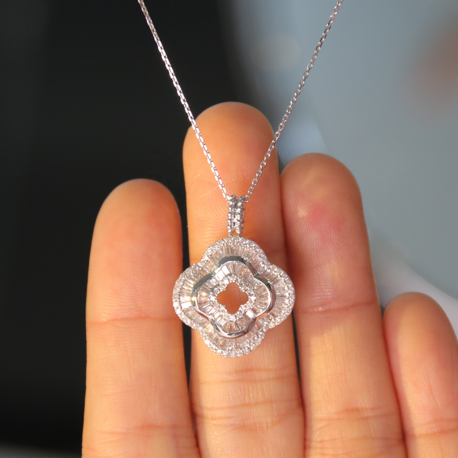 Amazing Price Custom Jewelry Woman 18k Gold Diamond Clover Necklace