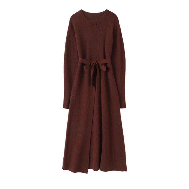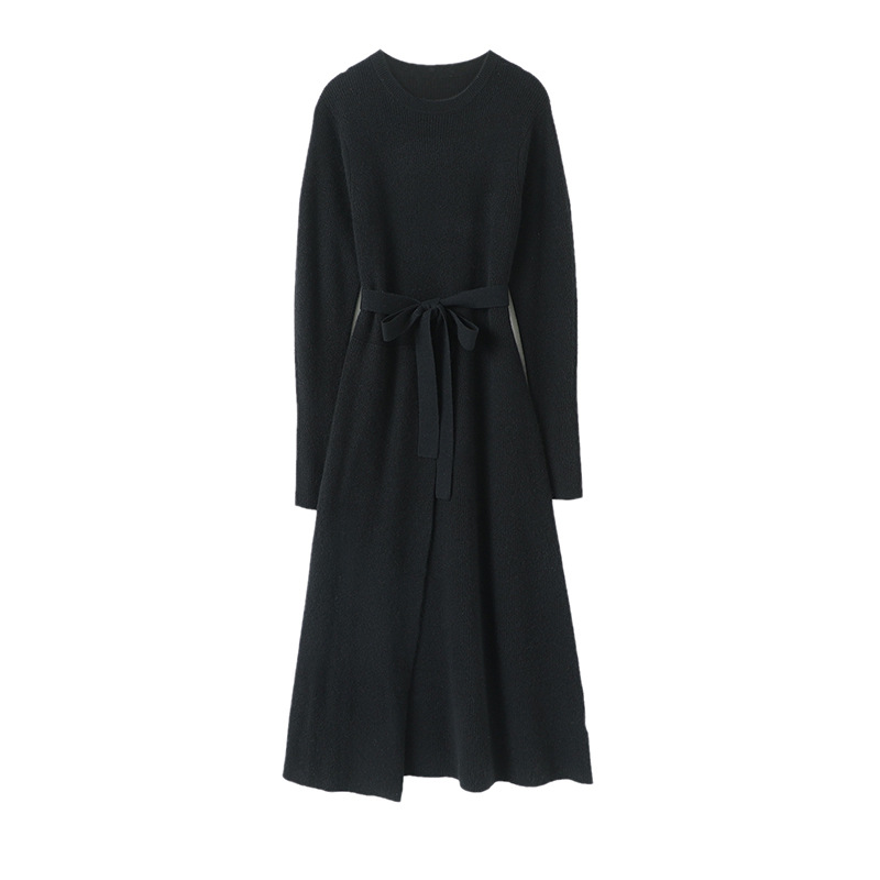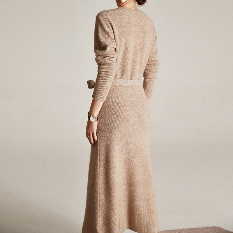 Design Women Cashmere Set Casual Dress Pullover Plus Size Knit Belt Long Sweater