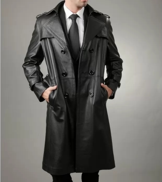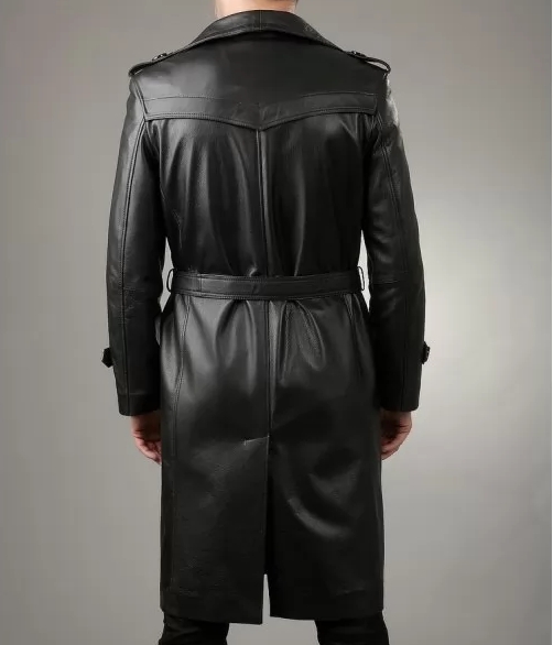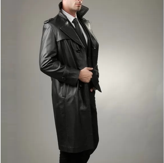 Men's Black Real Sheepskin Leather Full Length Trench Dress Coat