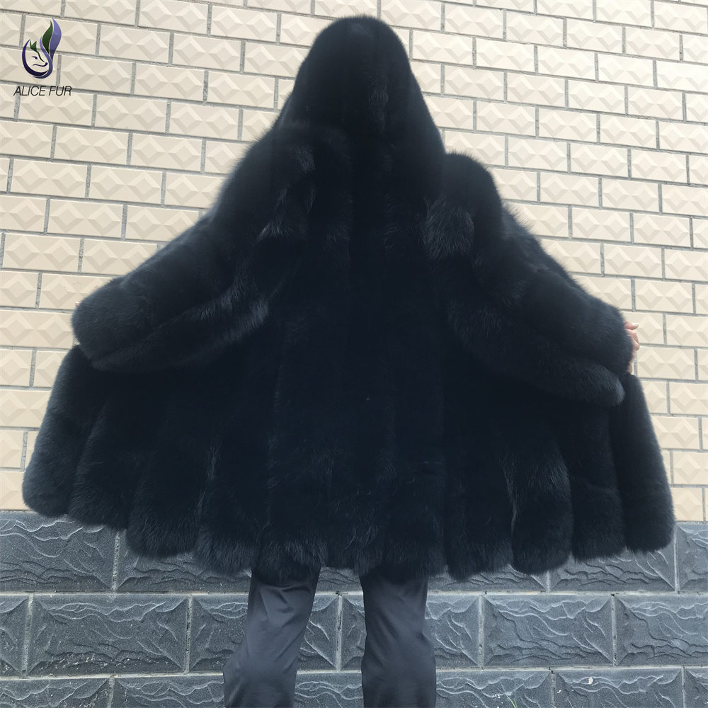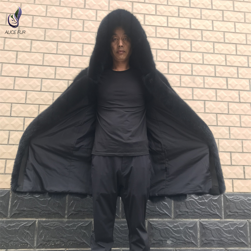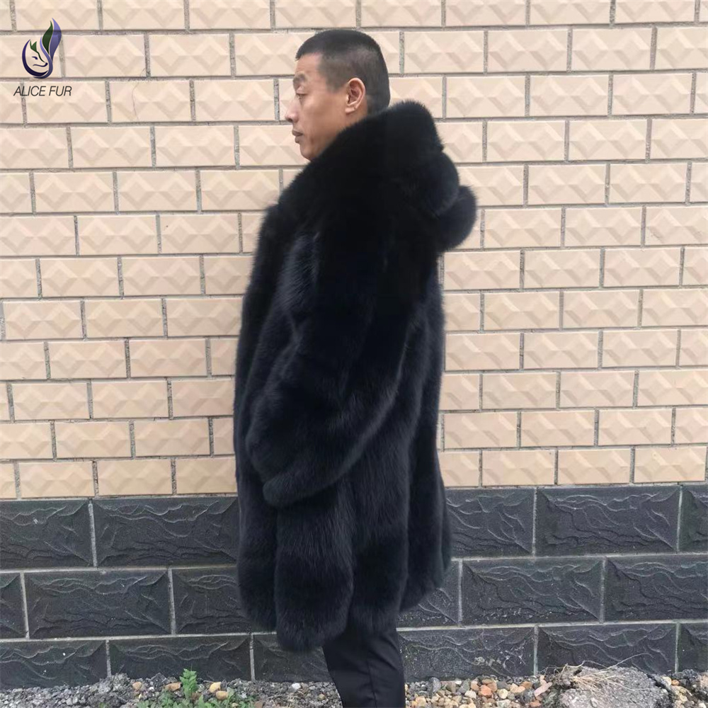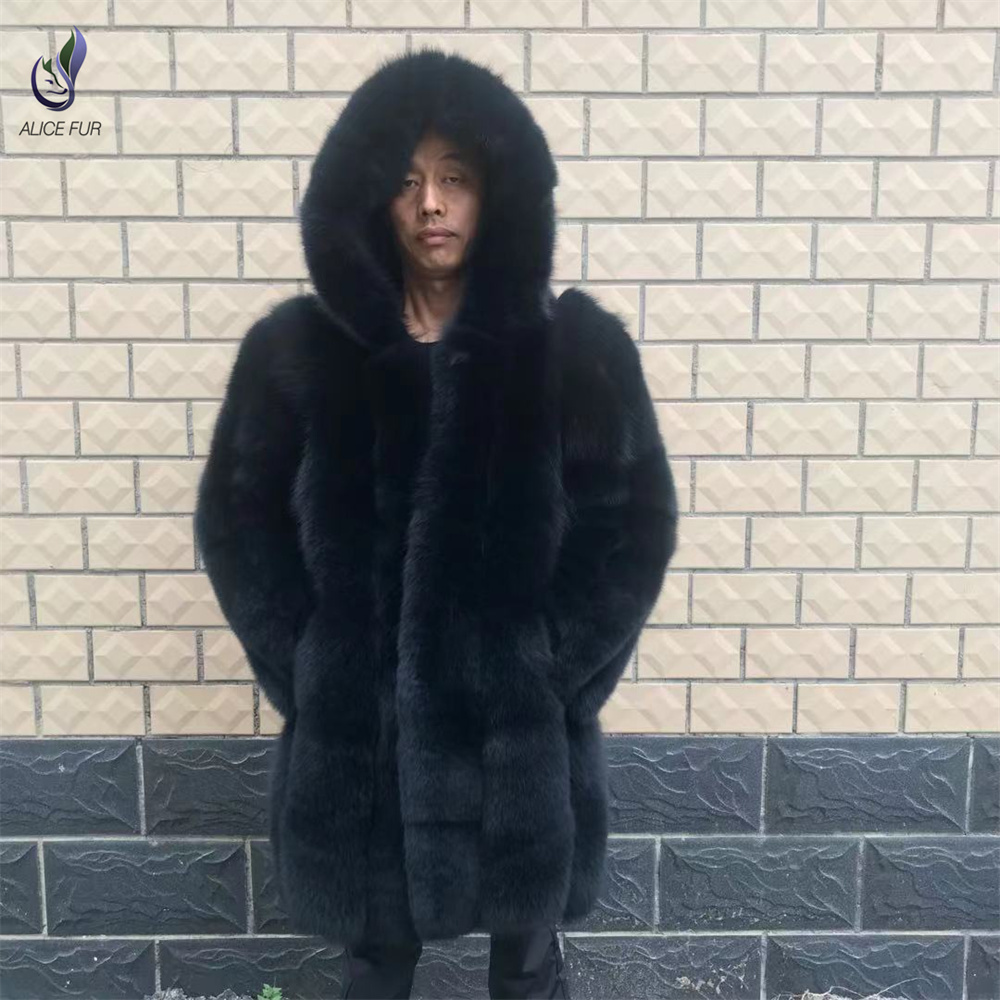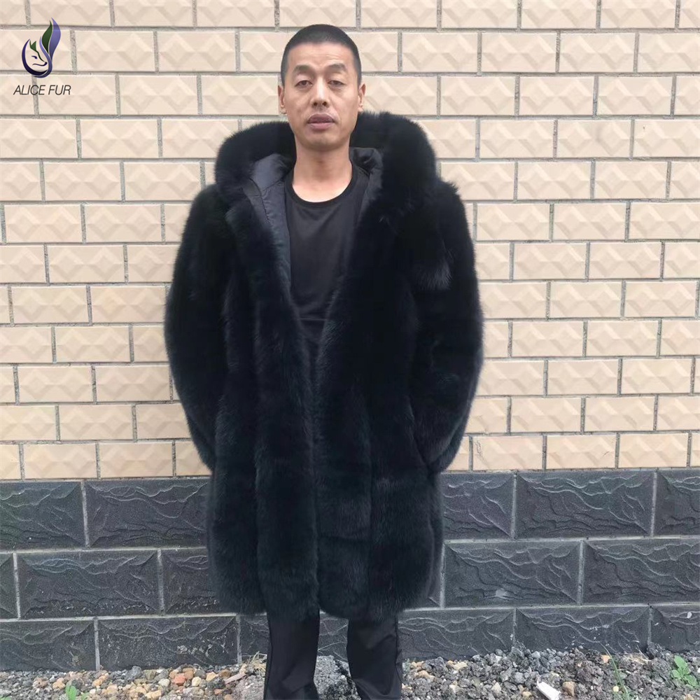 High quality Mens winter fur jacket thick warm Real genuine black fox fur coat with hood