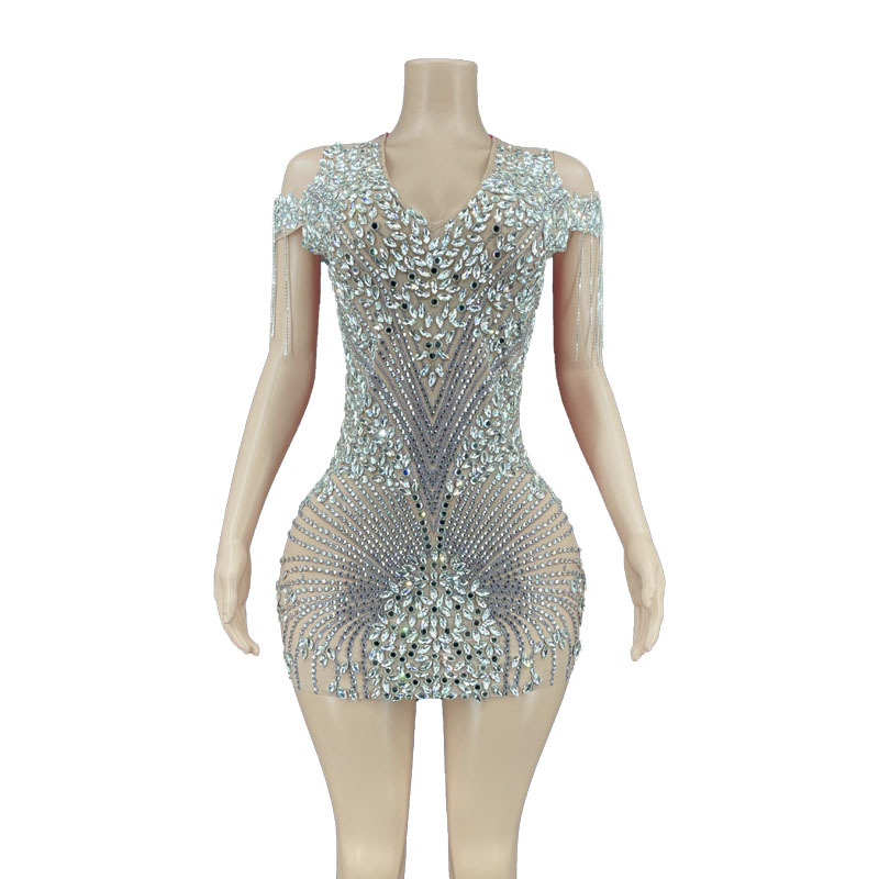 NOVANCE Y2150-B 2022 Dresses Women Party Sparkly Crystal Rhinestone Short Dress Women Party Show Stage Performance Dance Costume