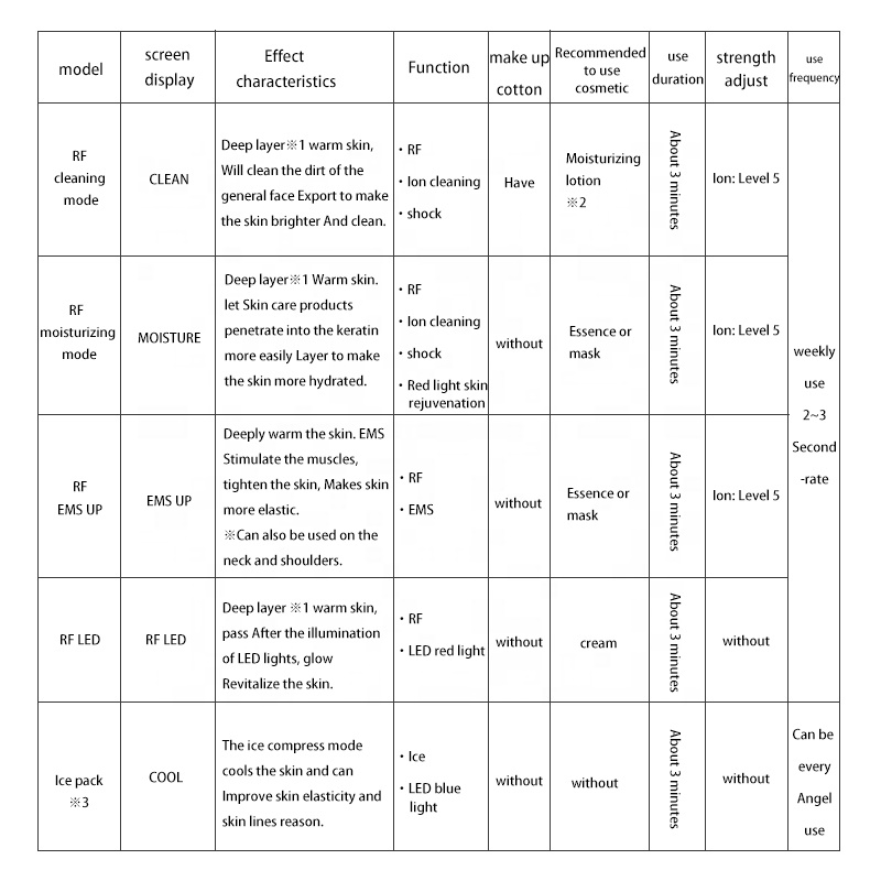 Functions | Skin Rejuvenation and Cleansing, Skin Tightening and Lighten lines, Face Lifting, Anti-aging, Wrinkle Removal. |