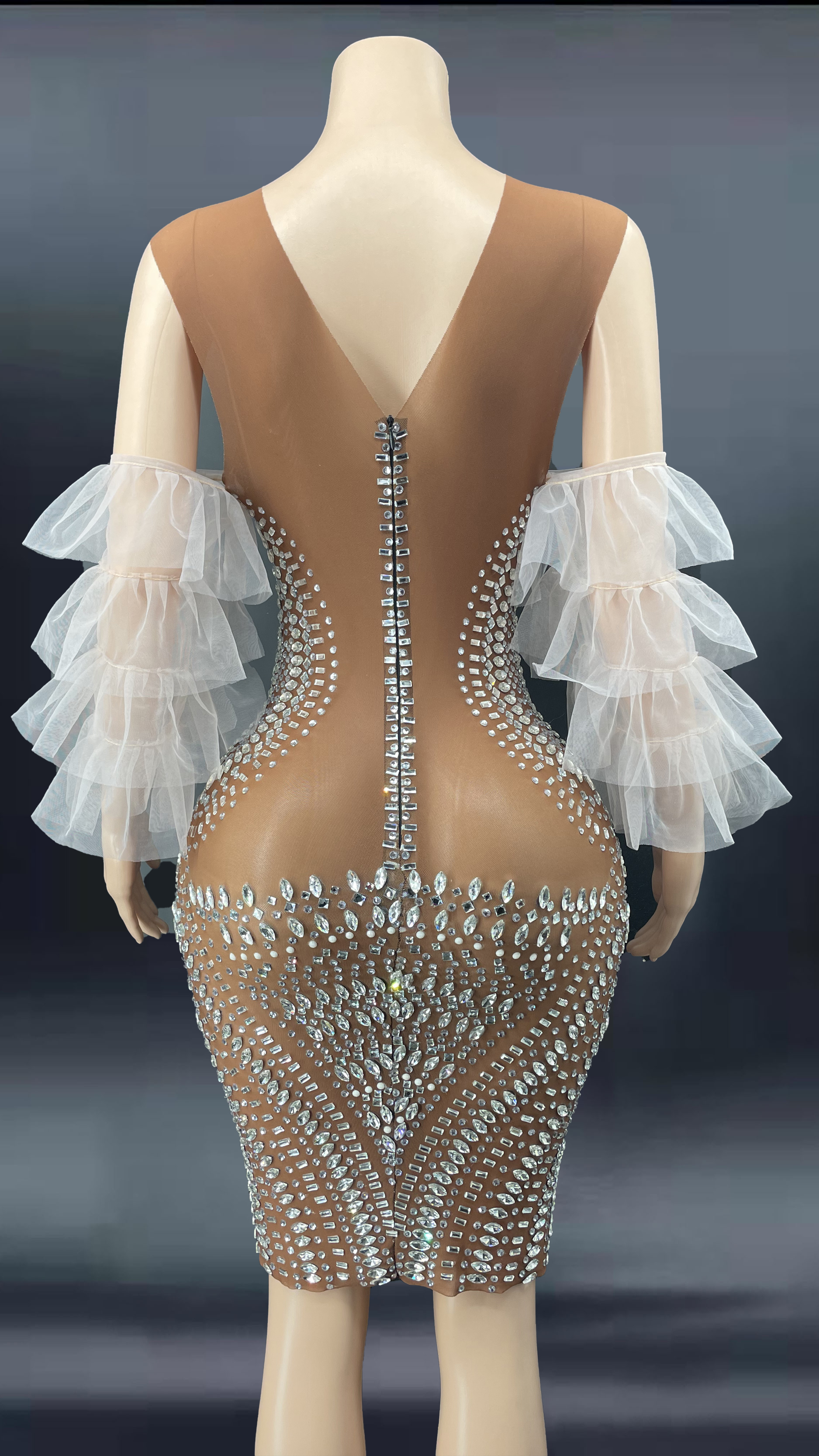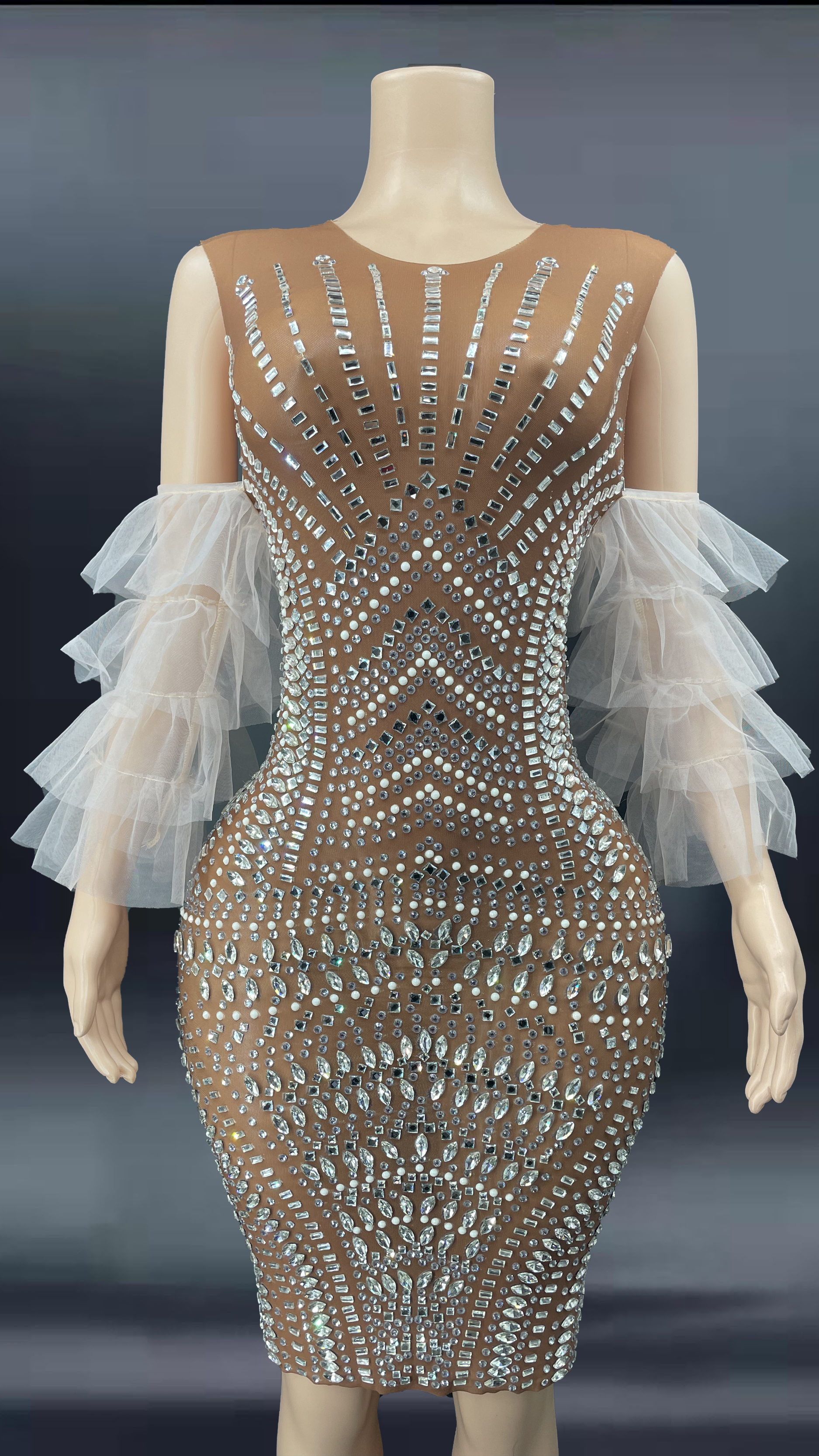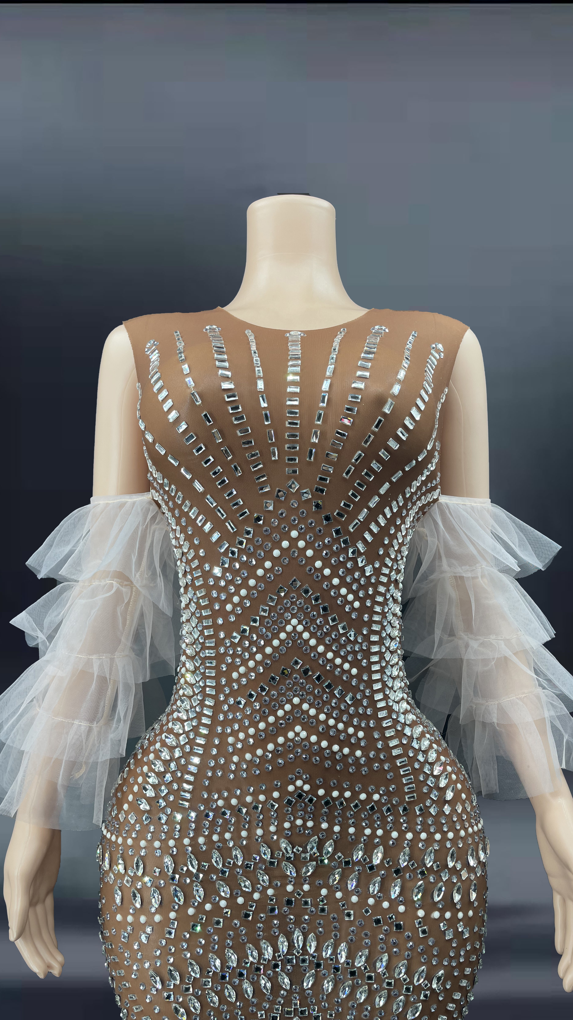 NOVANCE Y2396-B Wholesale Clothing Diamond Mesh Superposition Half Sleeve Birthday Dress Crystal Dress Elegant Party