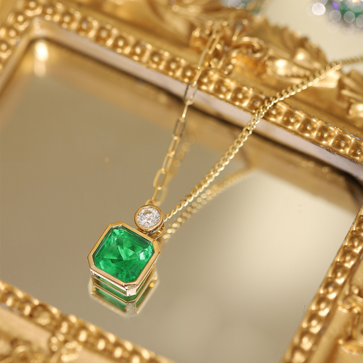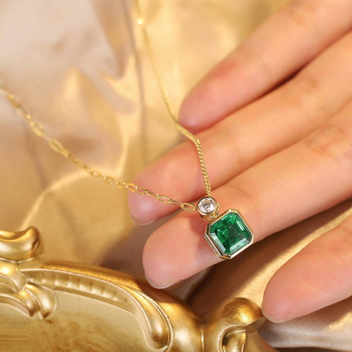 ANSTER Gold Necklace For Women 18K Pure Gold Pendant Lab Grown Emerald Asscher Cut Custom Gemstone Gifts For Girlfriend