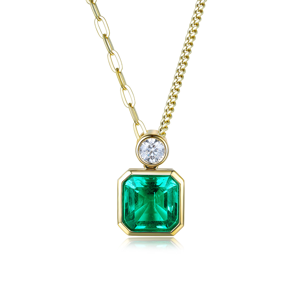 ANSTER Gold Necklace For Women 18K Pure Gold Asscher Cut Lab Grown Emerald Custom Gemstone Pendant Necklace With Chain