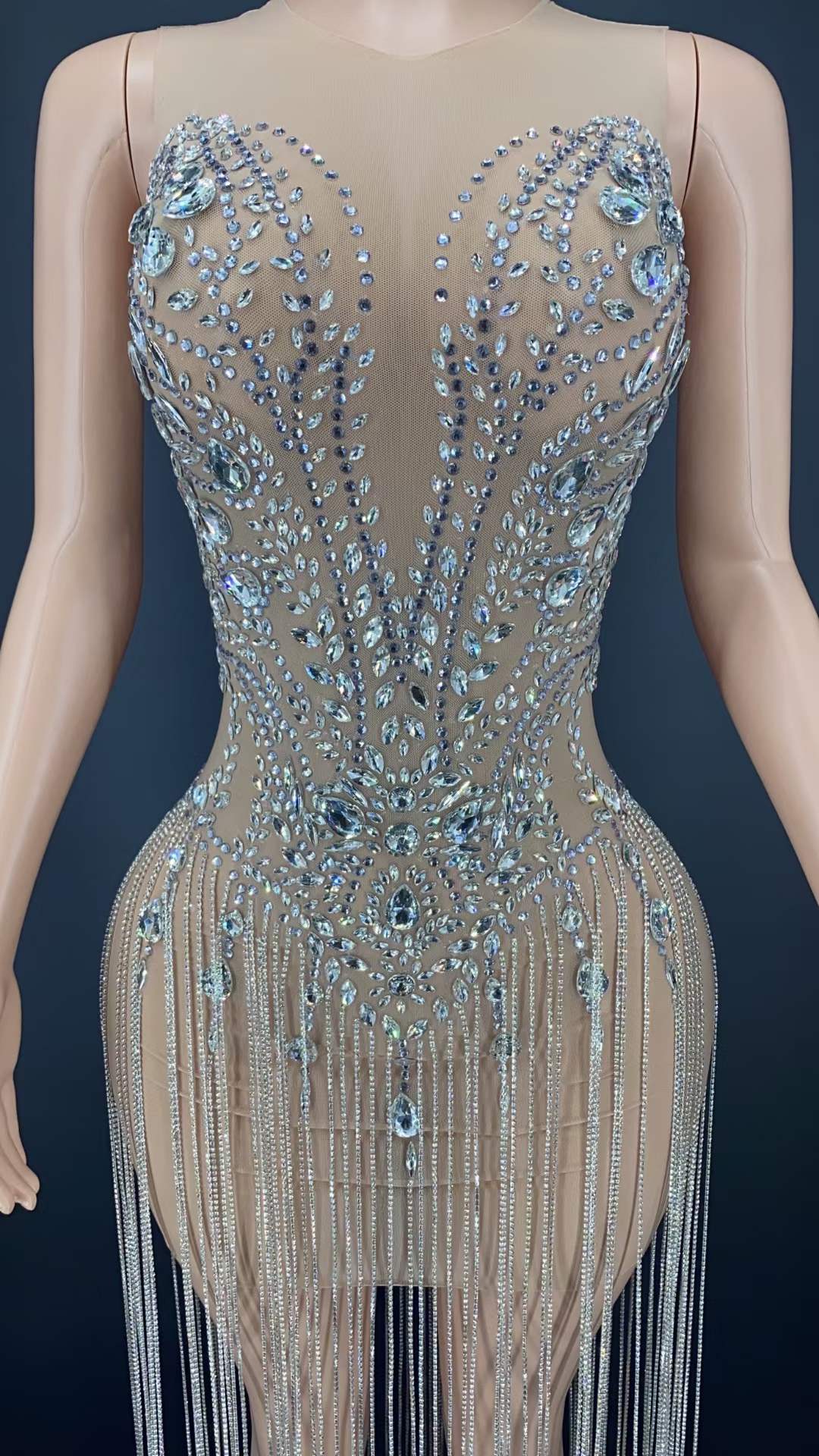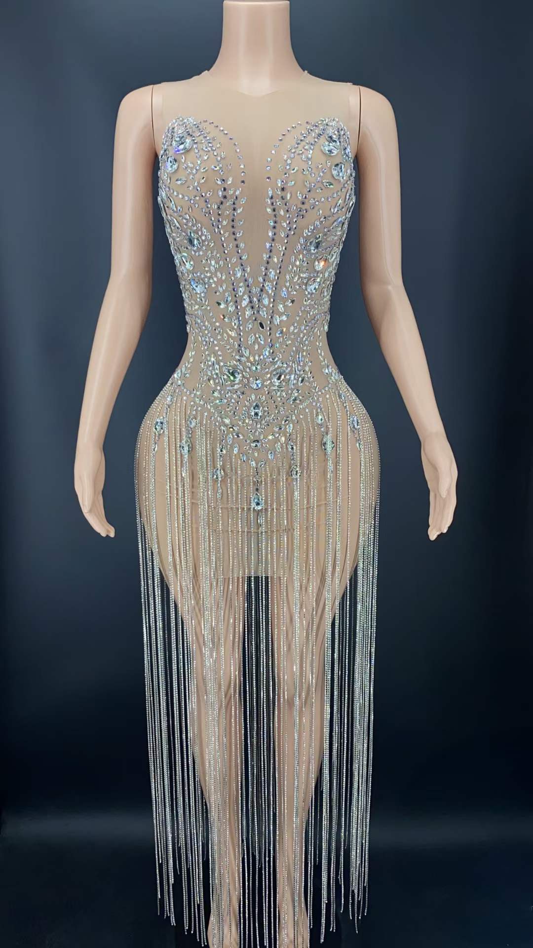 Ad1185 High Quality Women Clothing Luxury Evening Crystal Beading Ladies Party Wear Gown Tassel Prom Dress
