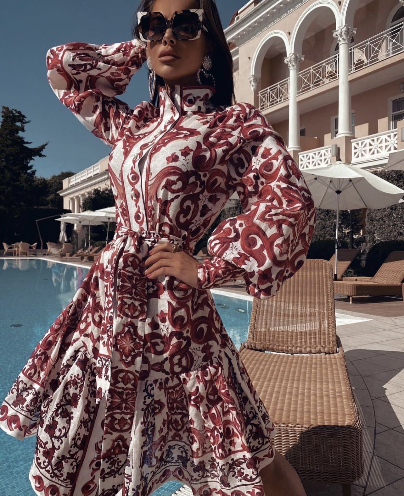 Getspring Women Dress Fashion Long Puff Sleeve Vintage Flower Print Dress Party Dress New 2022 Spring Summer Dropship Wholesale