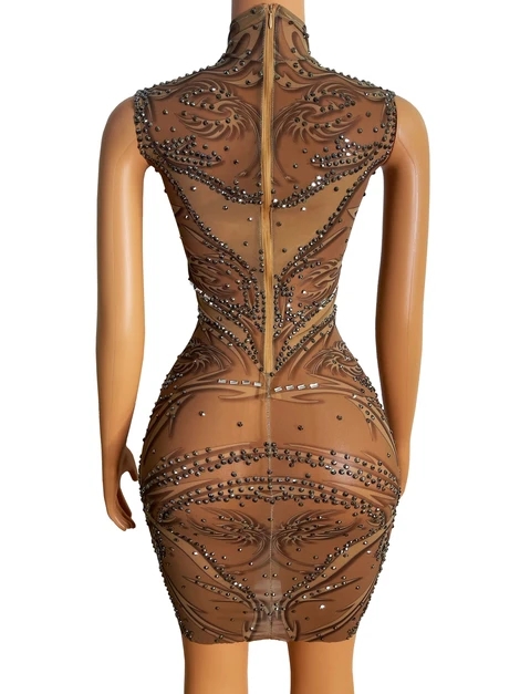 NOVANCE Y2034 Latest Dress Designs For Ladies Retro Style Brown Printed Rhinestone Frocks For Women Casual Dress High Quality