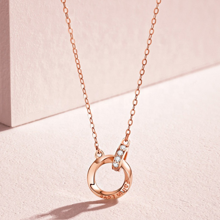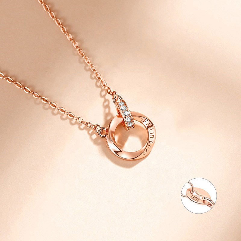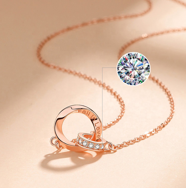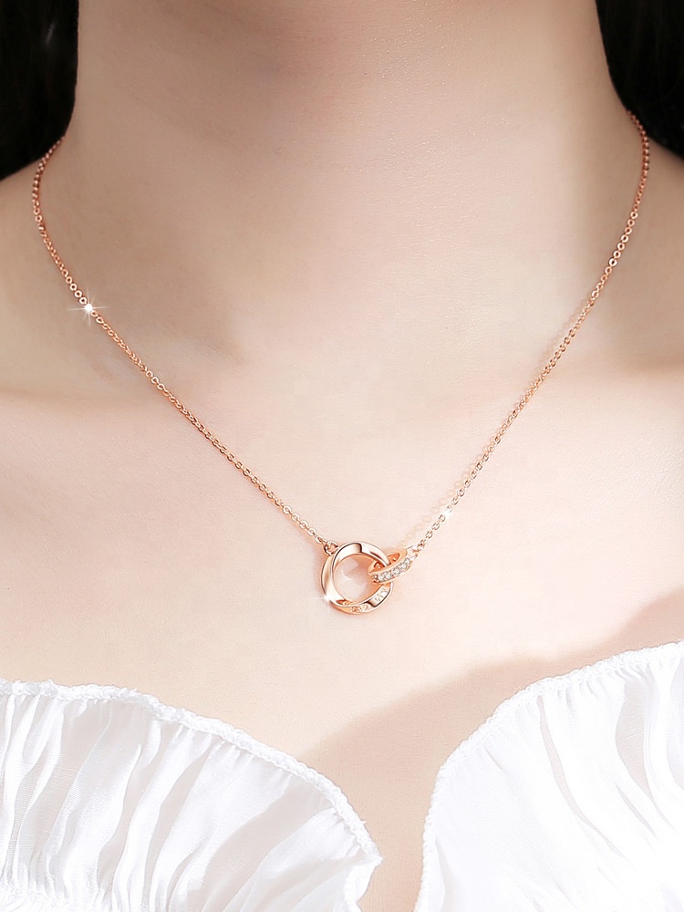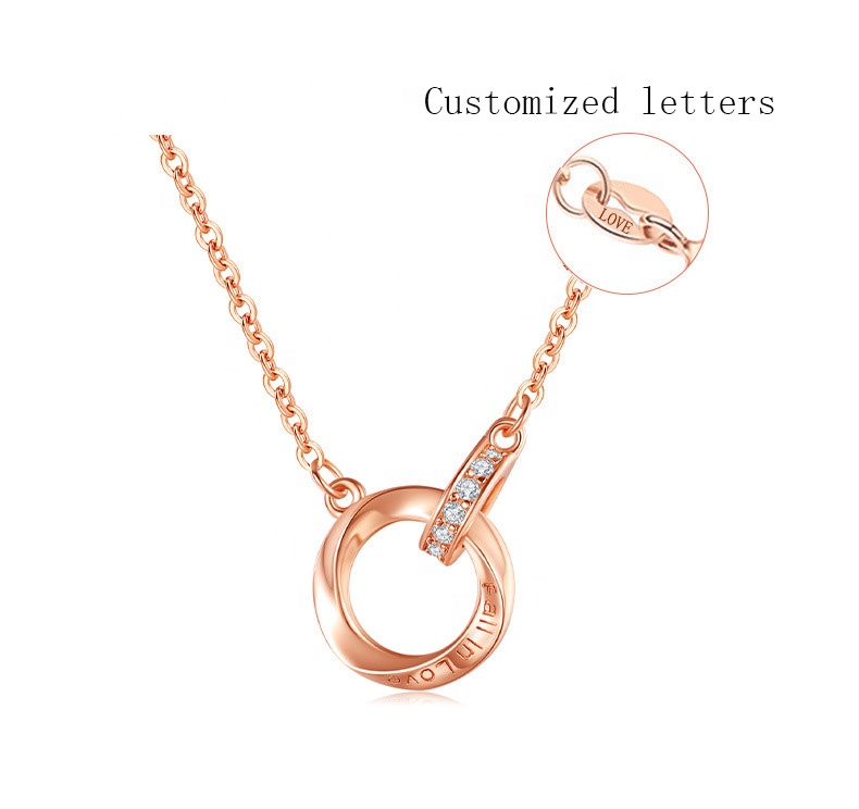 Xinfly Customized Letters Pure 18K Real Rose Gold Natural Diamond Mobius Endless Double Circles Pendant Necklace Women