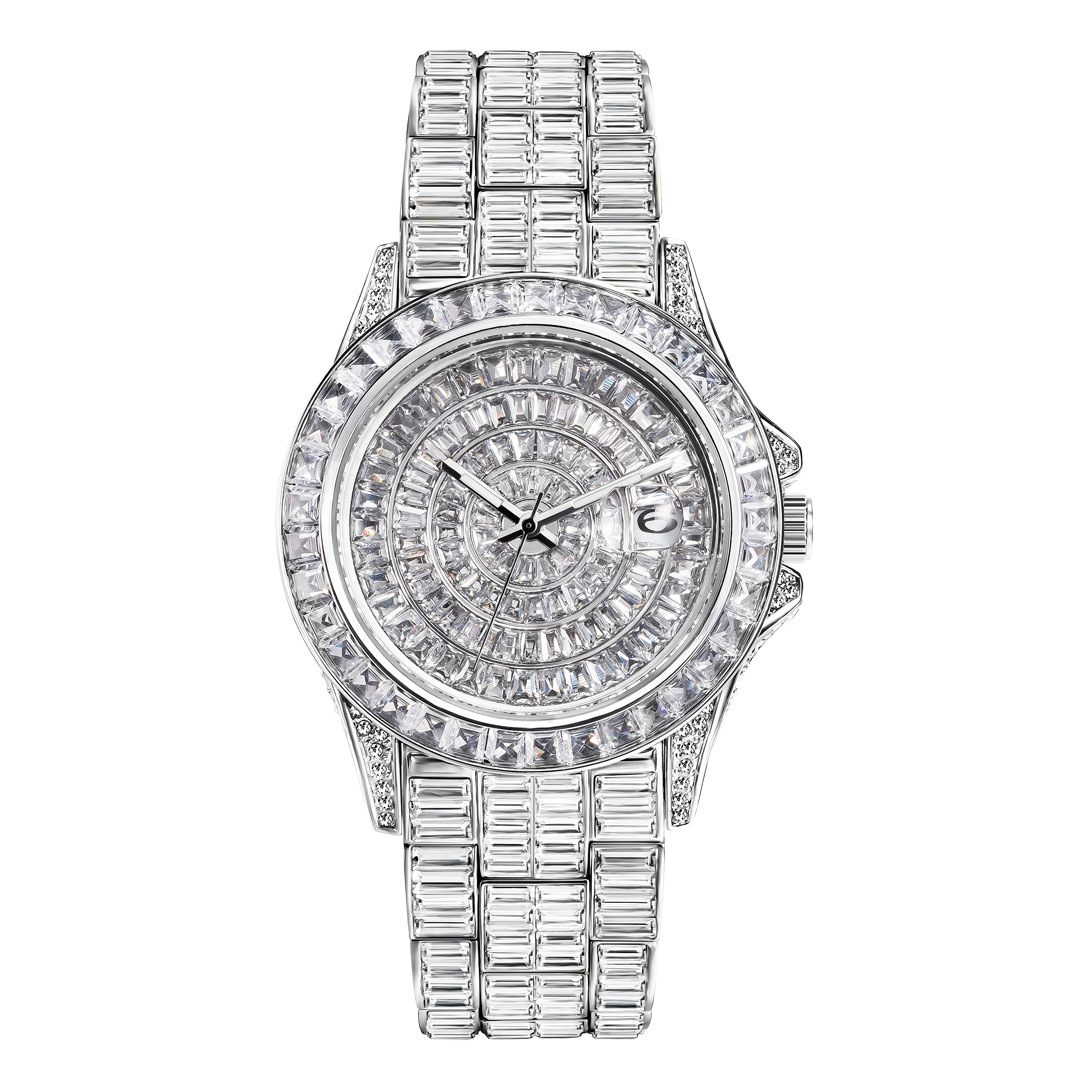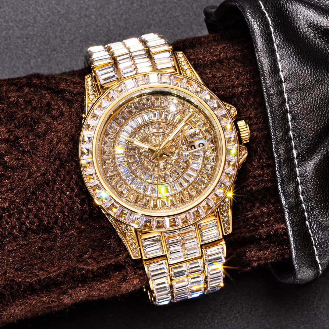 | Product Name | Hip Hop Luxury Men Women Wrist Diamond Watch 18K Gold PVD Plated Fully Baguette CZ Bling Waterproof Quartz Watch |