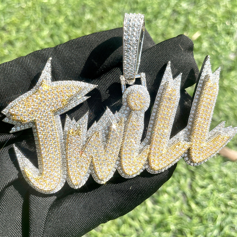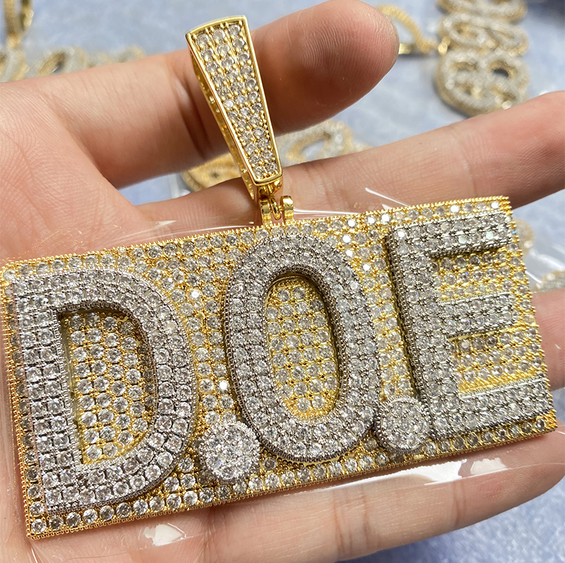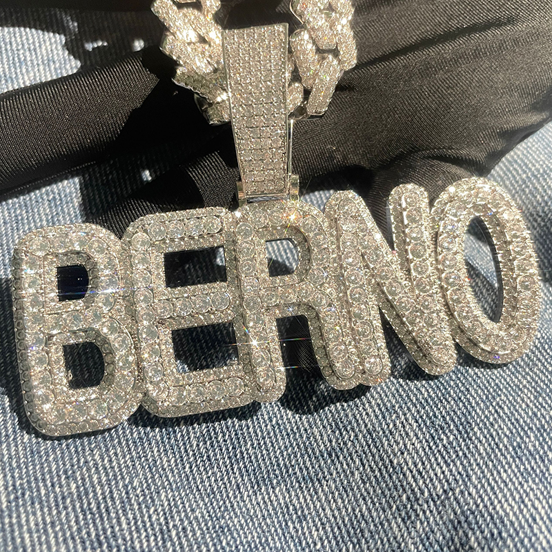 2022 Iced Out Jewelry Hip Hop Custom Design CZ VVS Moissanite Gold Silver Color Name L etter Pendant Necklace