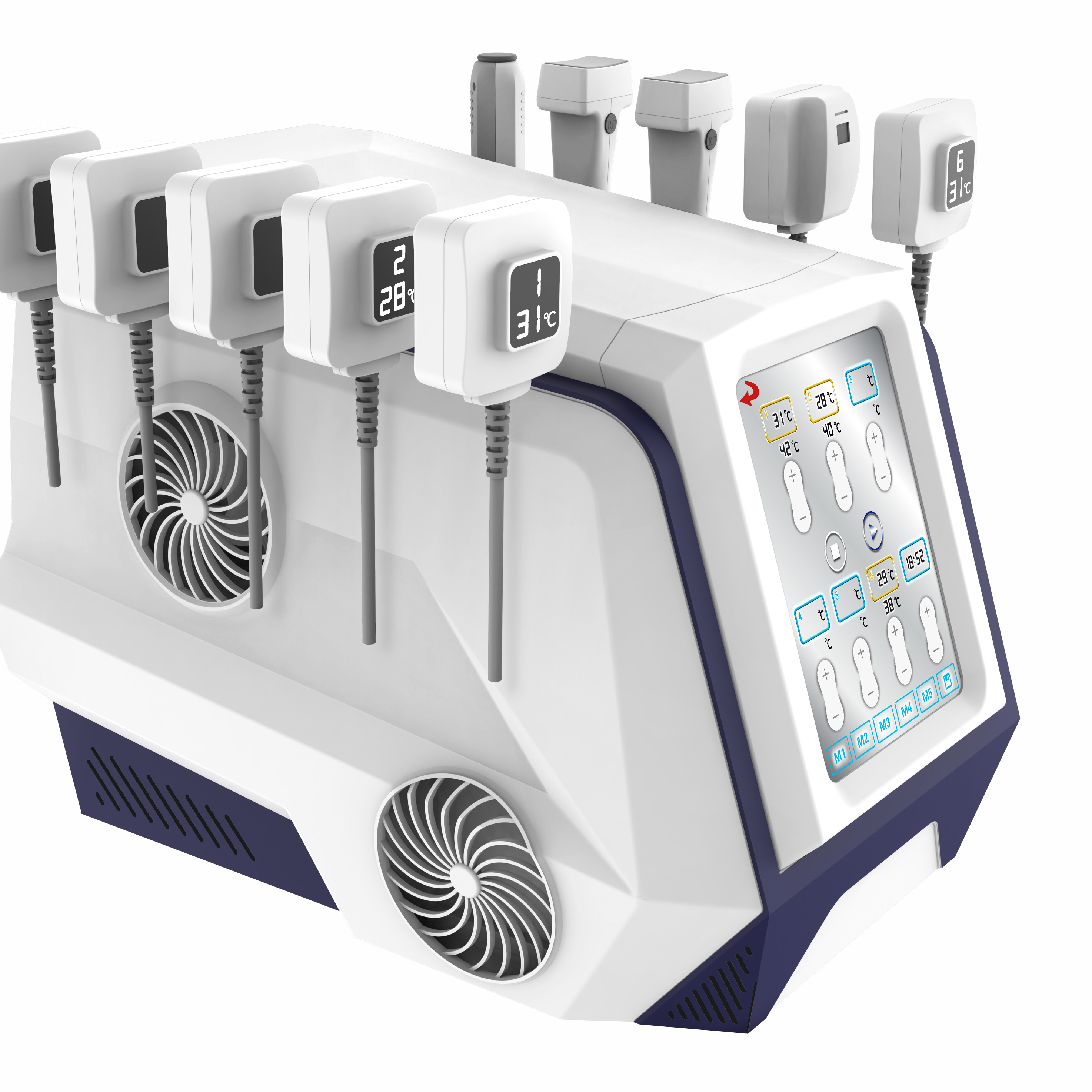 9.The system features an intuitive interface and a range of handles to customize treatment, whether for multiple hands-free areas or a single handle area for treatment.