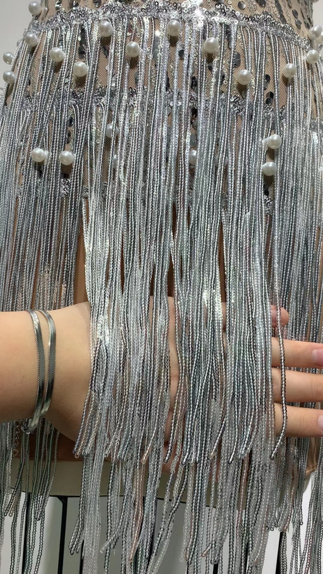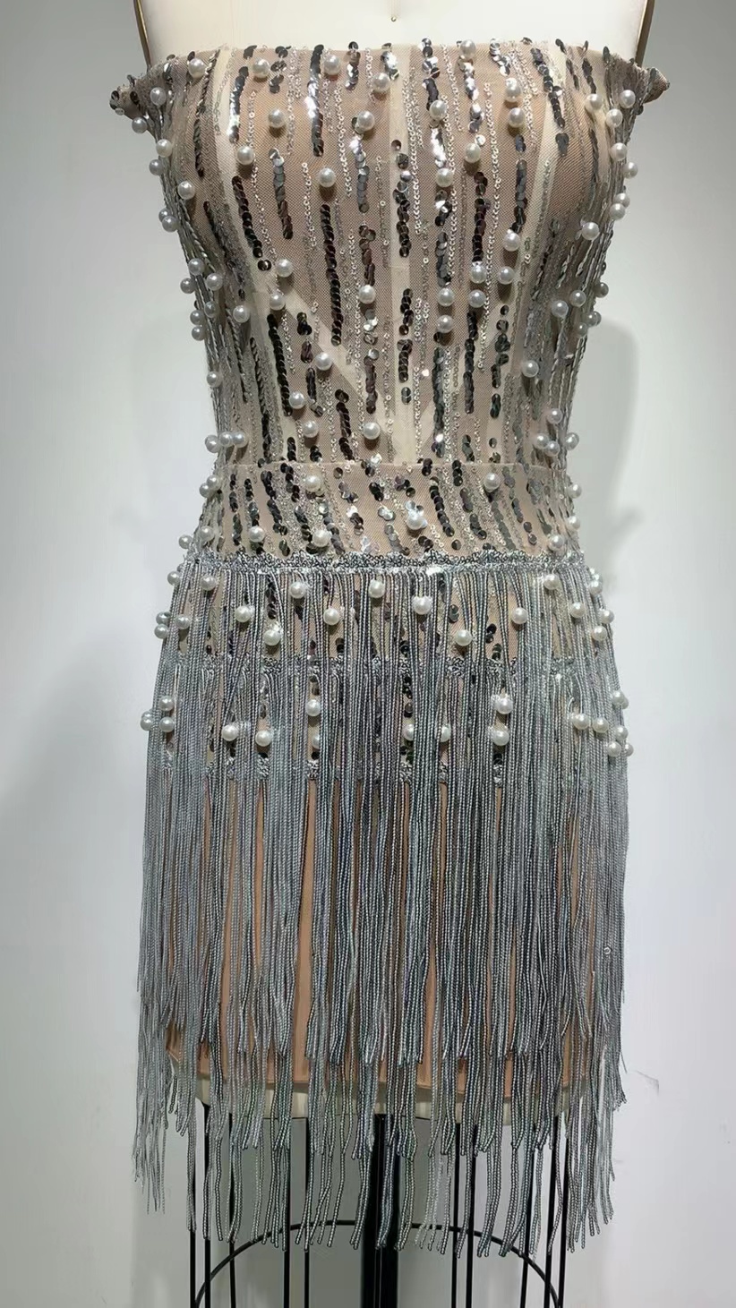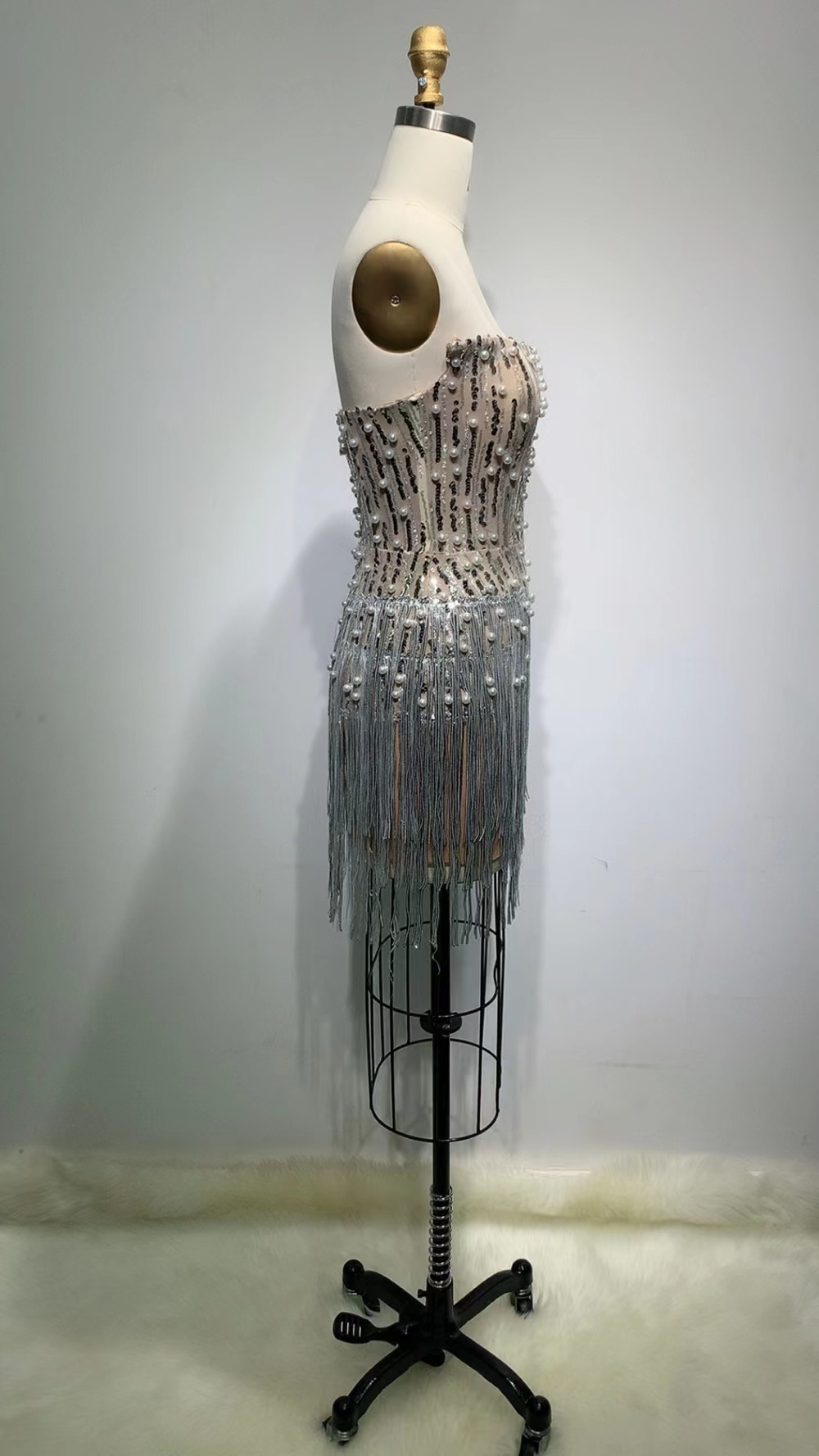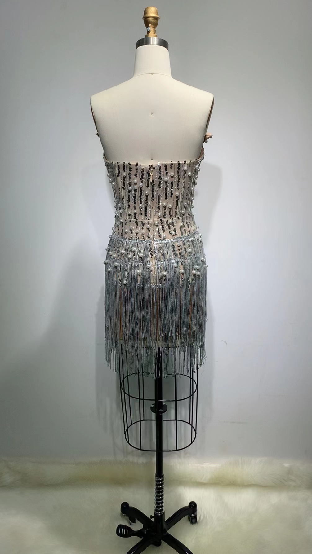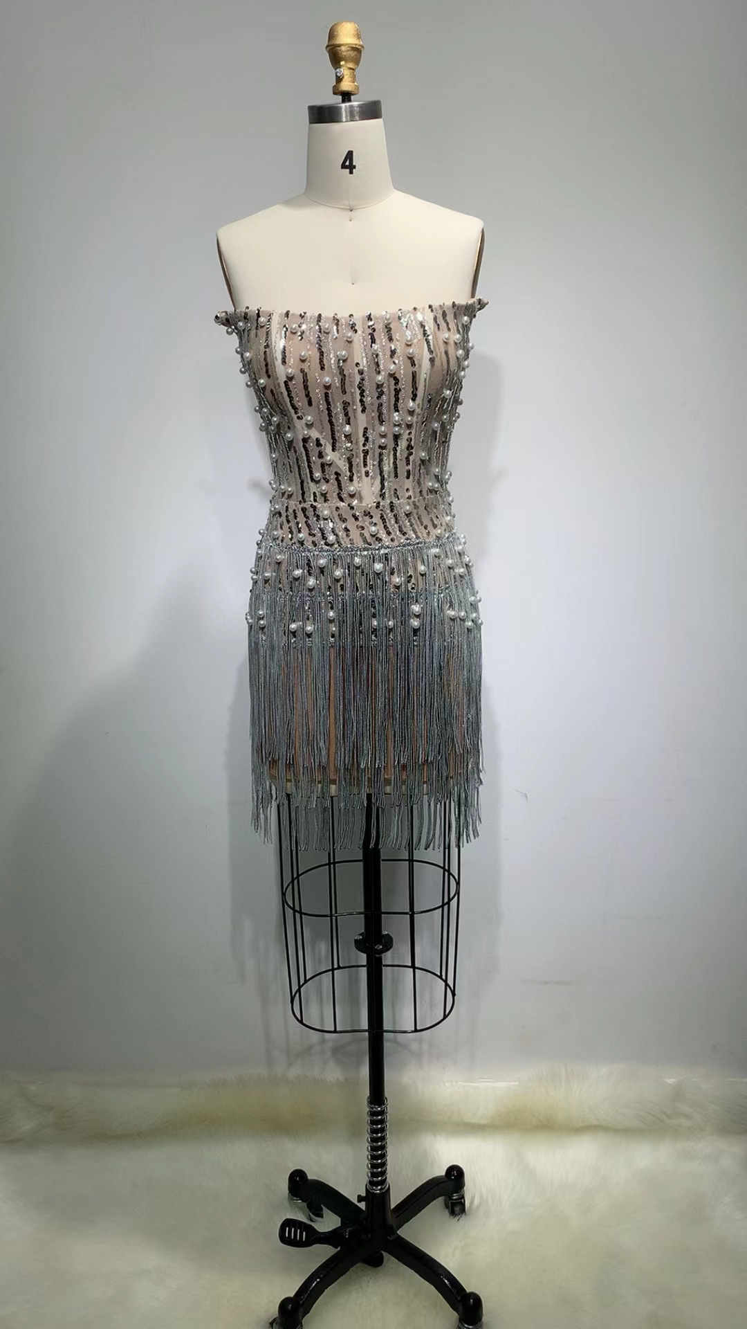 ED2194 Kimshein Sexy Ladies Off Shoulder Beading Sequin Tassel Glitter Outfits Mini Evening Party Dance Dress