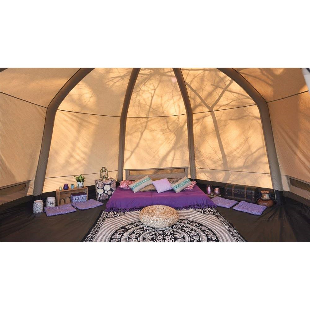 If you love the idea of owning your own Yurt but want it to be much quicker and easier to put up, then this inflatable Yurt is ideal for your next glamping trip this summer!HydroTex Polycotton RS, 35% cotton / 65% polyester, RipstopSewn-in groundsheet, 210T Oxford polyester, 100% polyester, 10,000 mmAir Technology poles (max pressure 9psi/0.6 bar)Large windowsRainproof ventsCapacity: 8 personPack Size: 100*45*45cmWeight: 30 kg