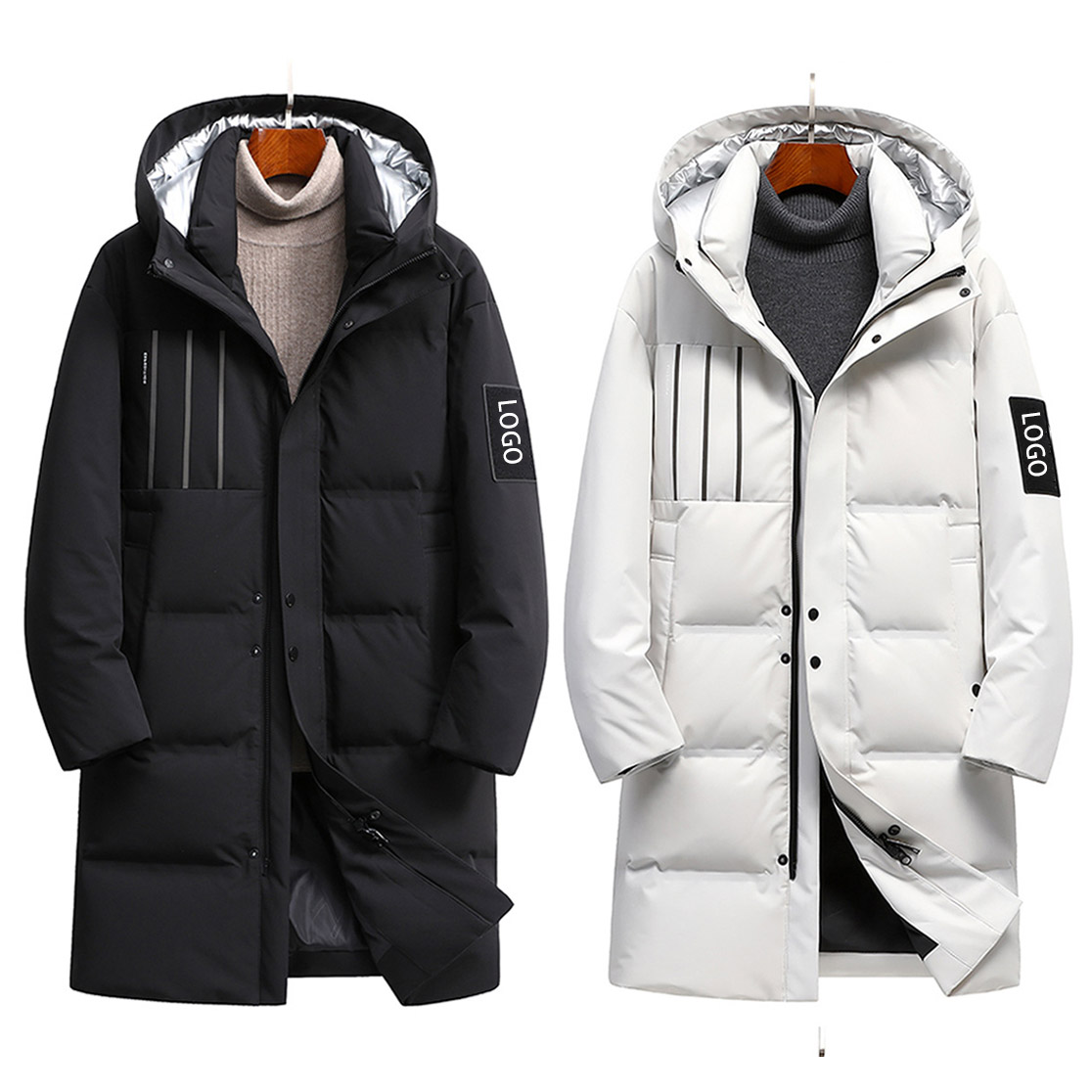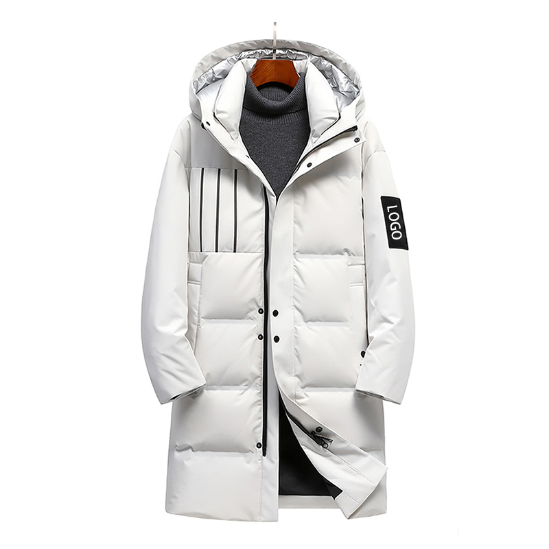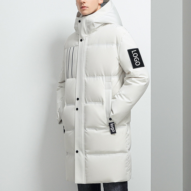 Long Down Jacket Mens White Blank Custom Logo Zipper Single-breasted Unisex Bubble Puffer Jacket