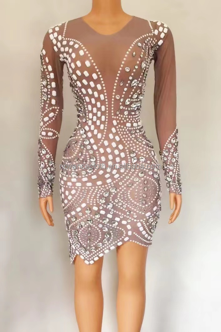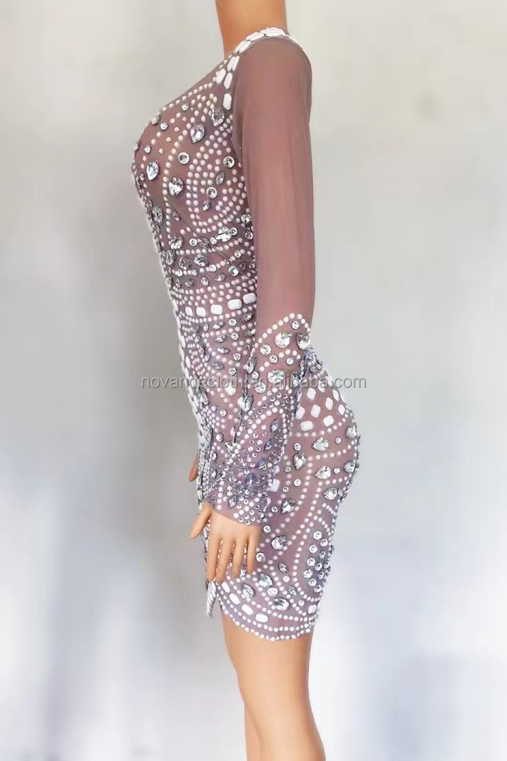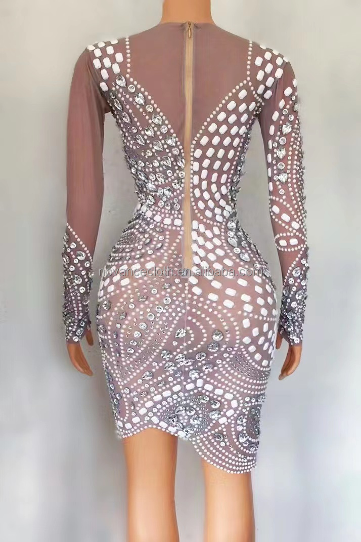 China Wholesale Silver Pearls Diamond Other Dresses Robes-Pour-Femme-Ob Nightclub Stage Bar Dance Party Evening Costume