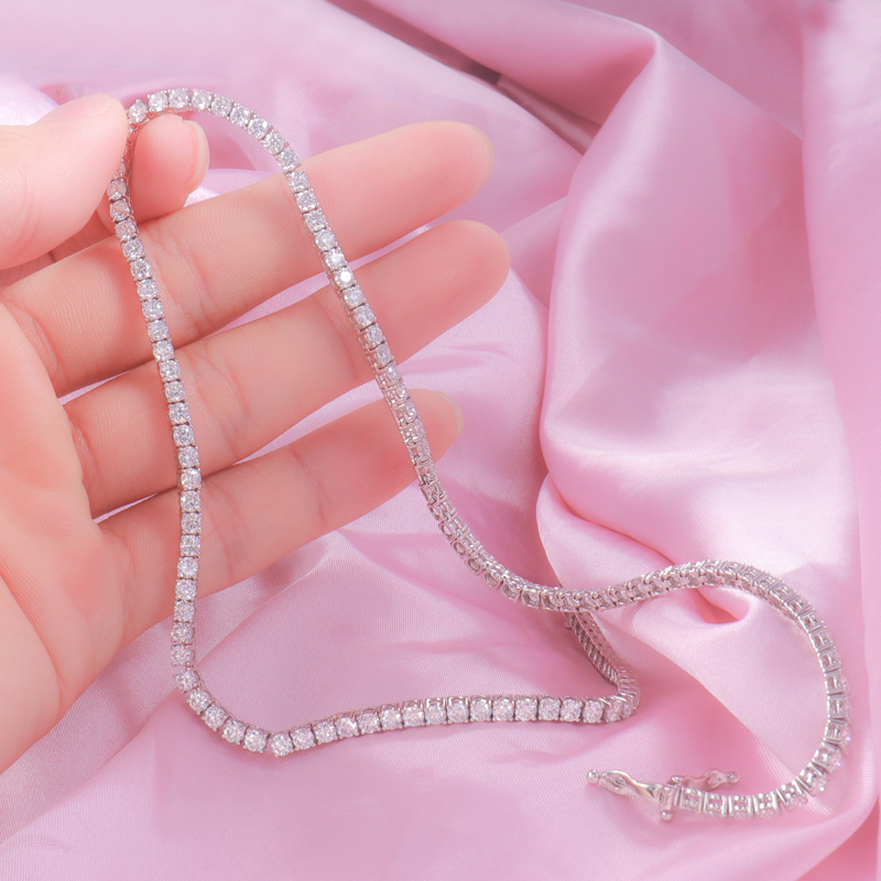 Sliver Moissanite Tennis Necklace 925 Sterling Sliver vvs moissanite diamond tennis chain 2mm