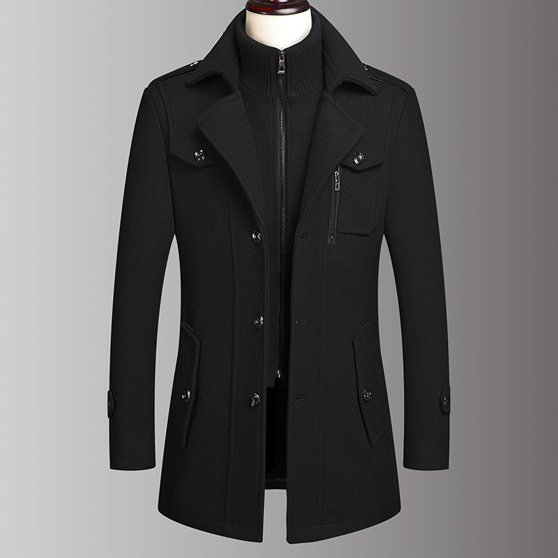 Men Winter Wool Coat Men's New High Quality Solid Color Simple Blends Woolen Pea Coat Male Trench Coat Casual Overcoat