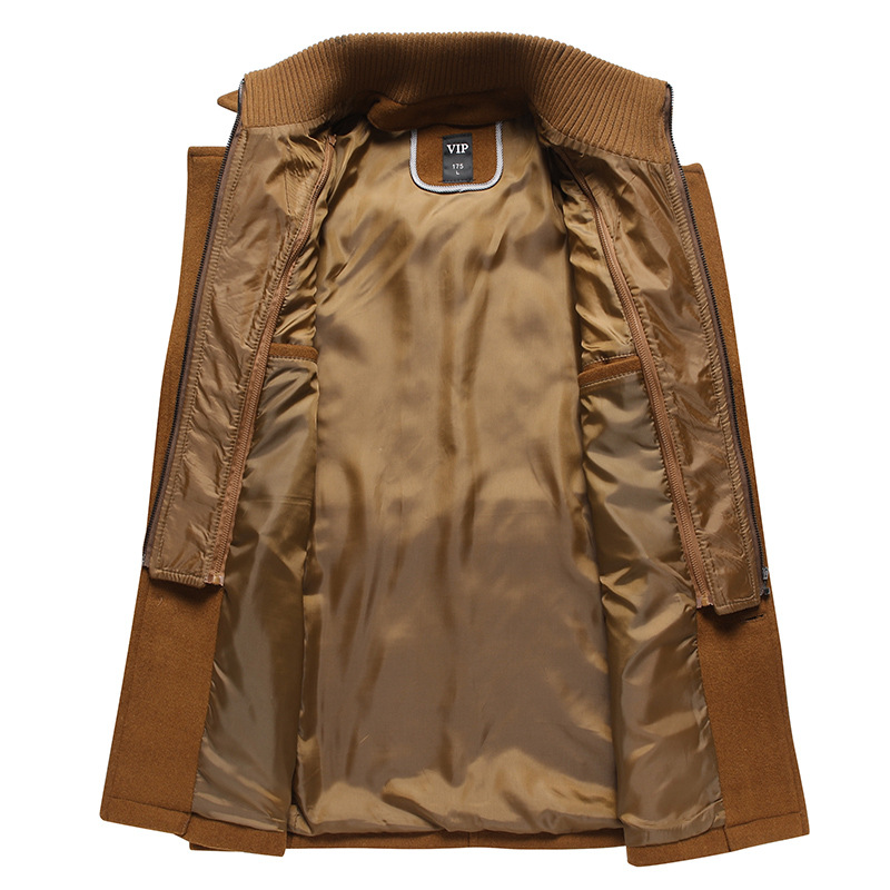 New Autumn Winter Men's Double Collar Woolen Warm Long Coat Plus Size Windproof Jacket for Men M-4XL Grey Black Khaki